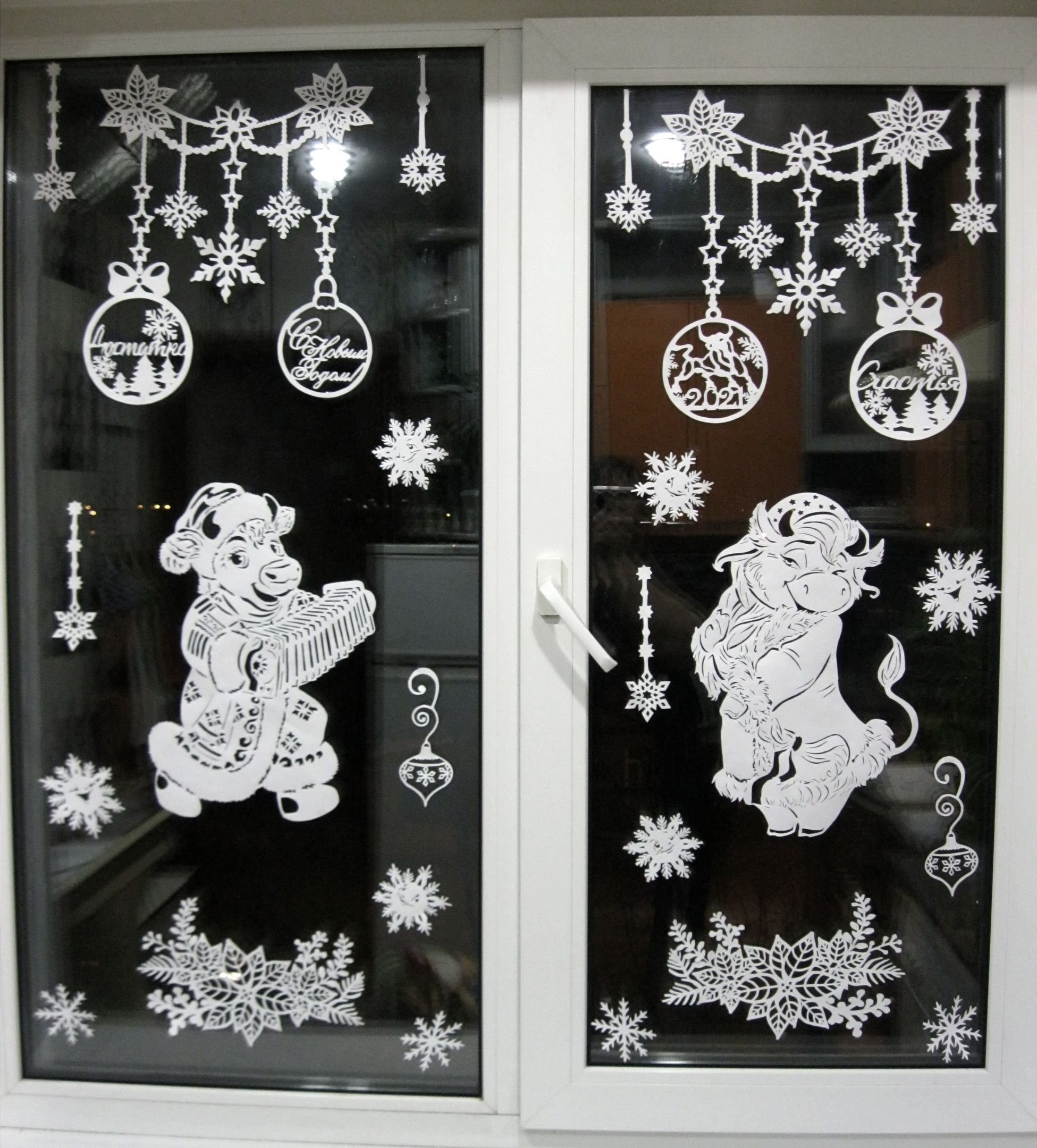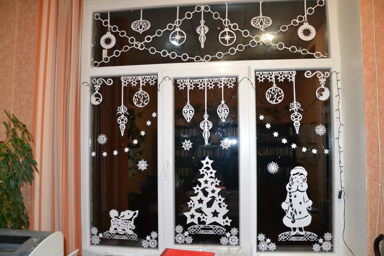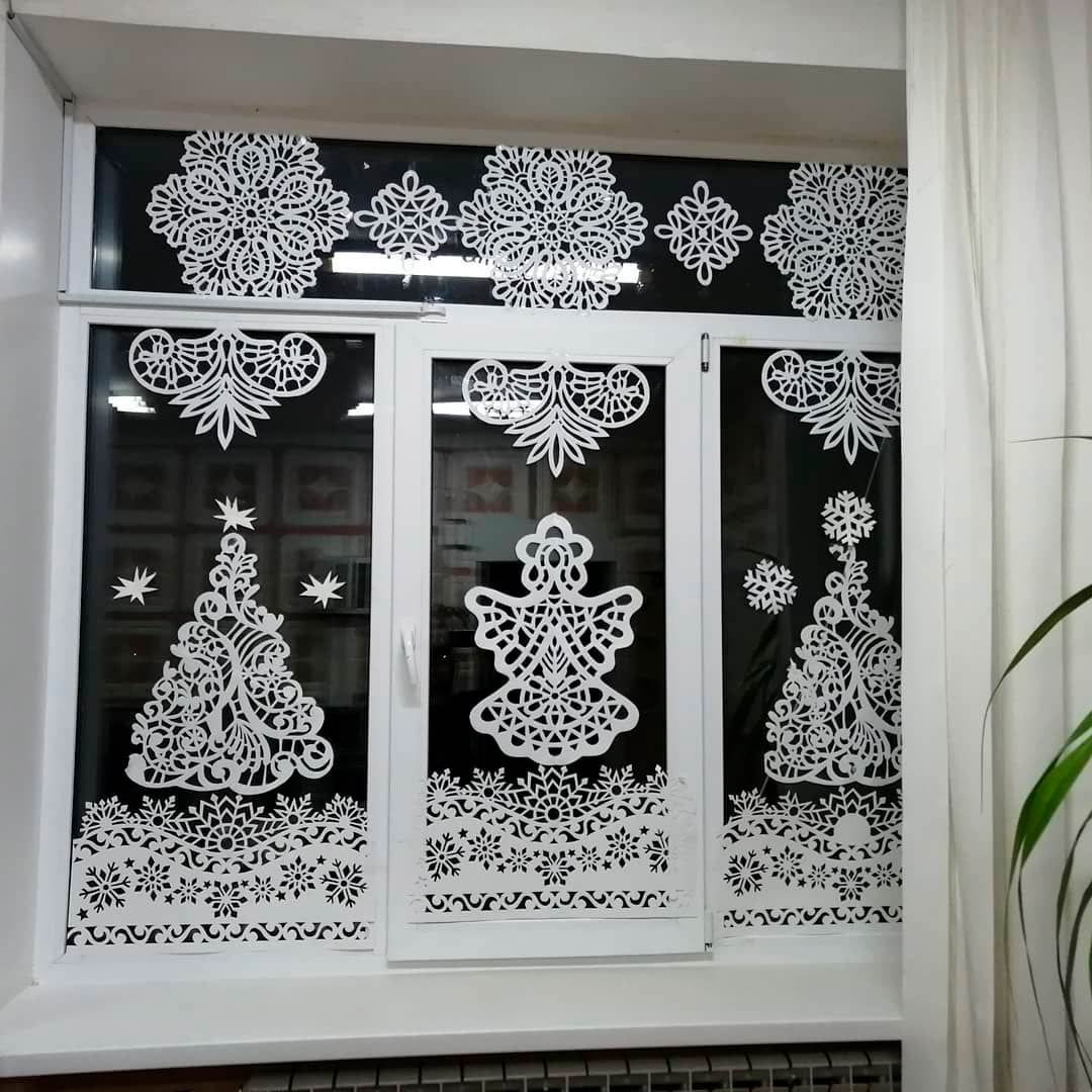 62. Украшение окон на новый год вытынанками