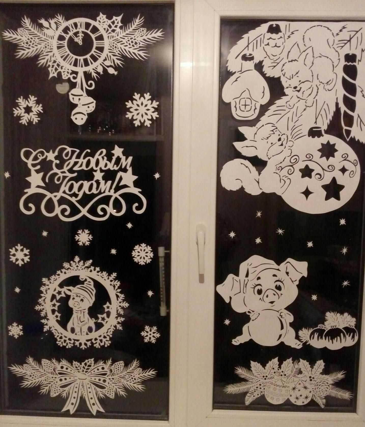 18. Новогодние окна украшенные вытынанками