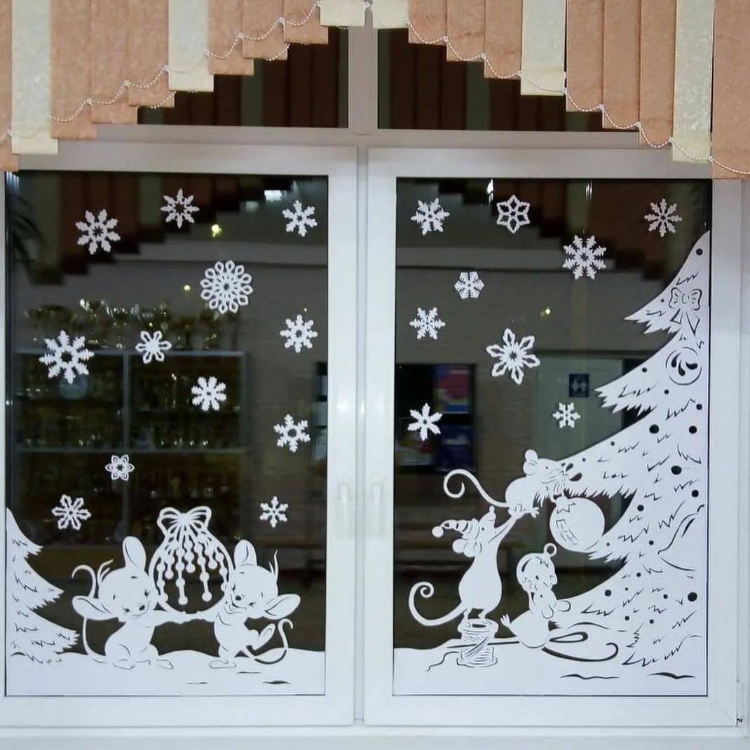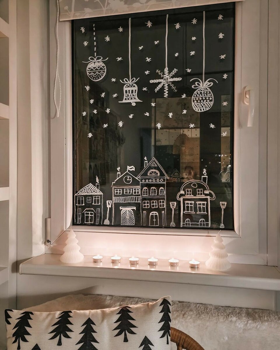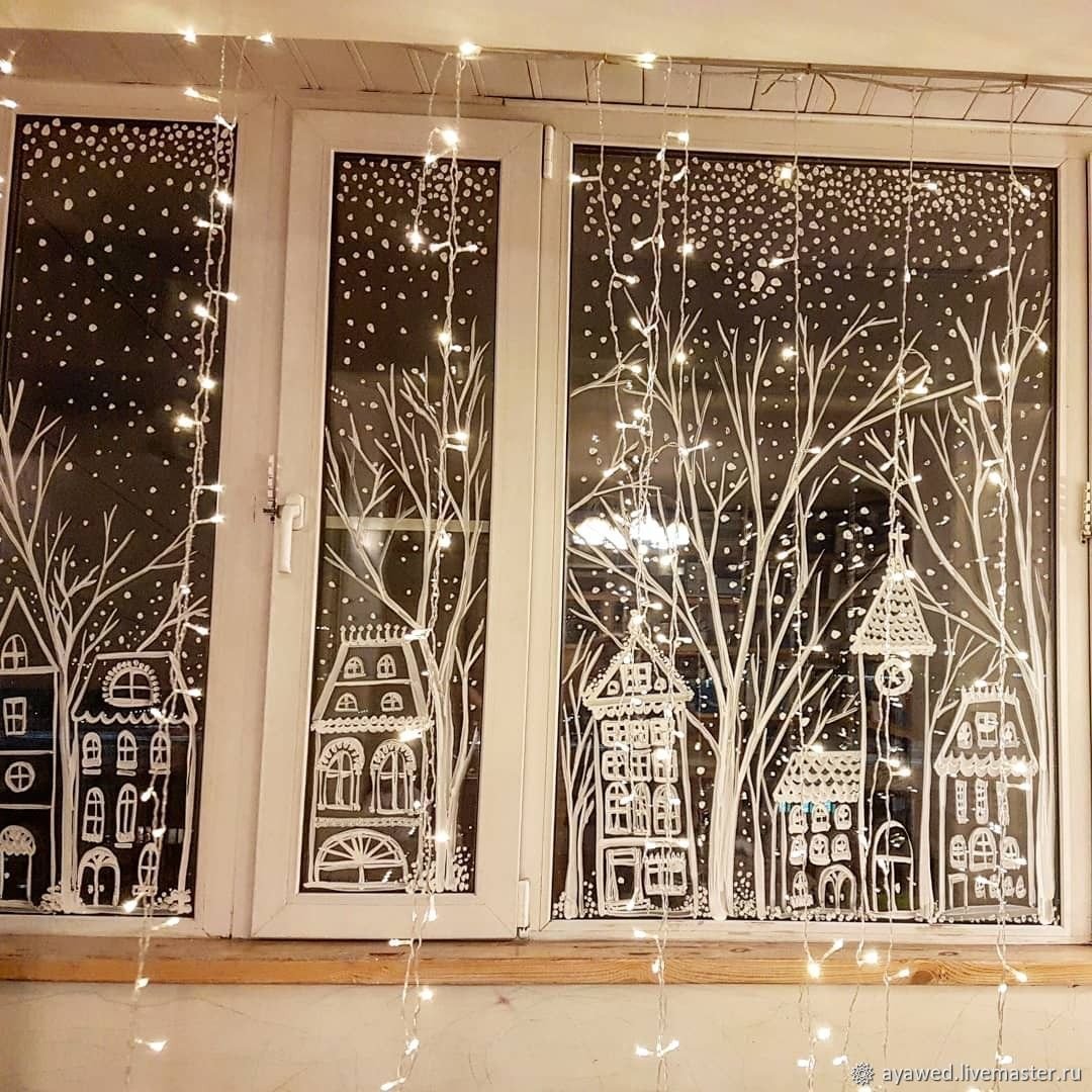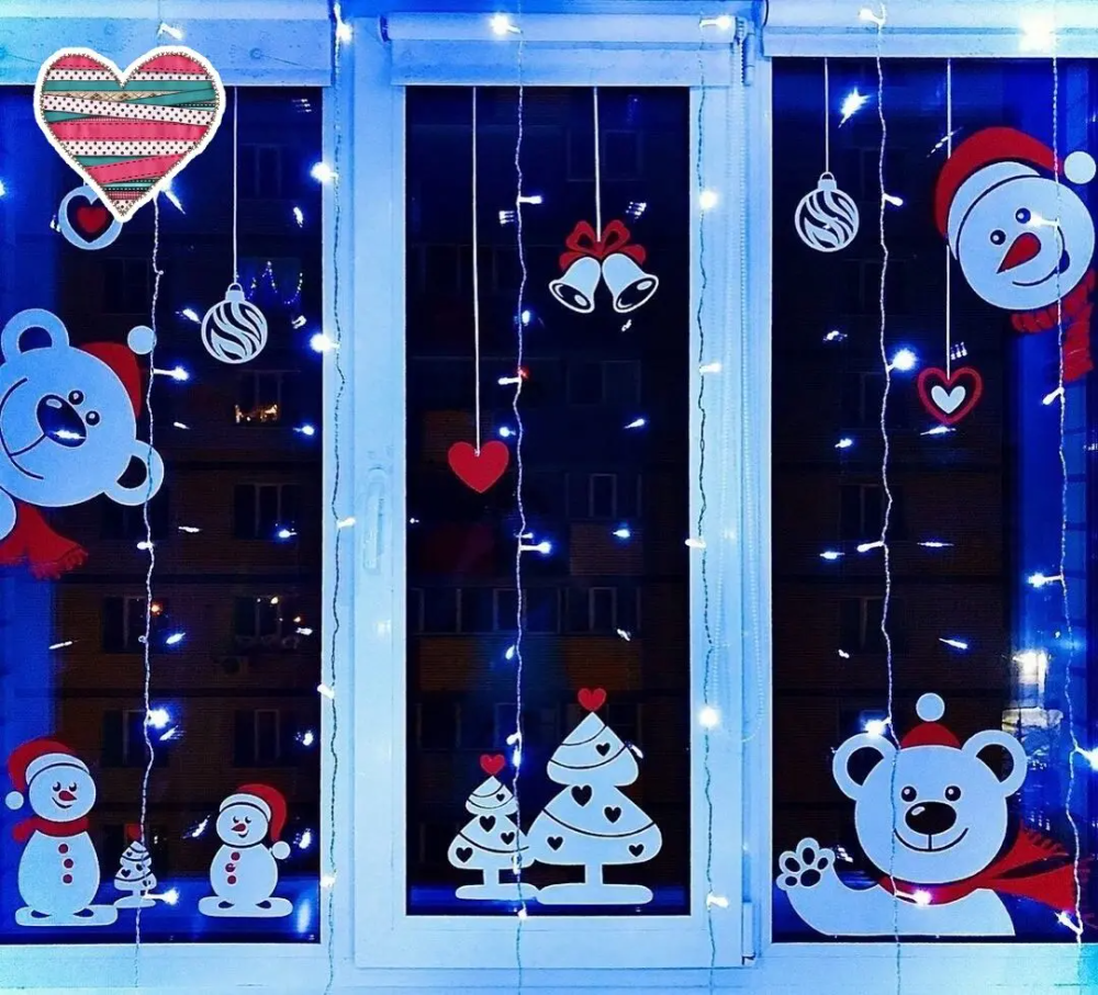 32. Новогодние окна украшенные