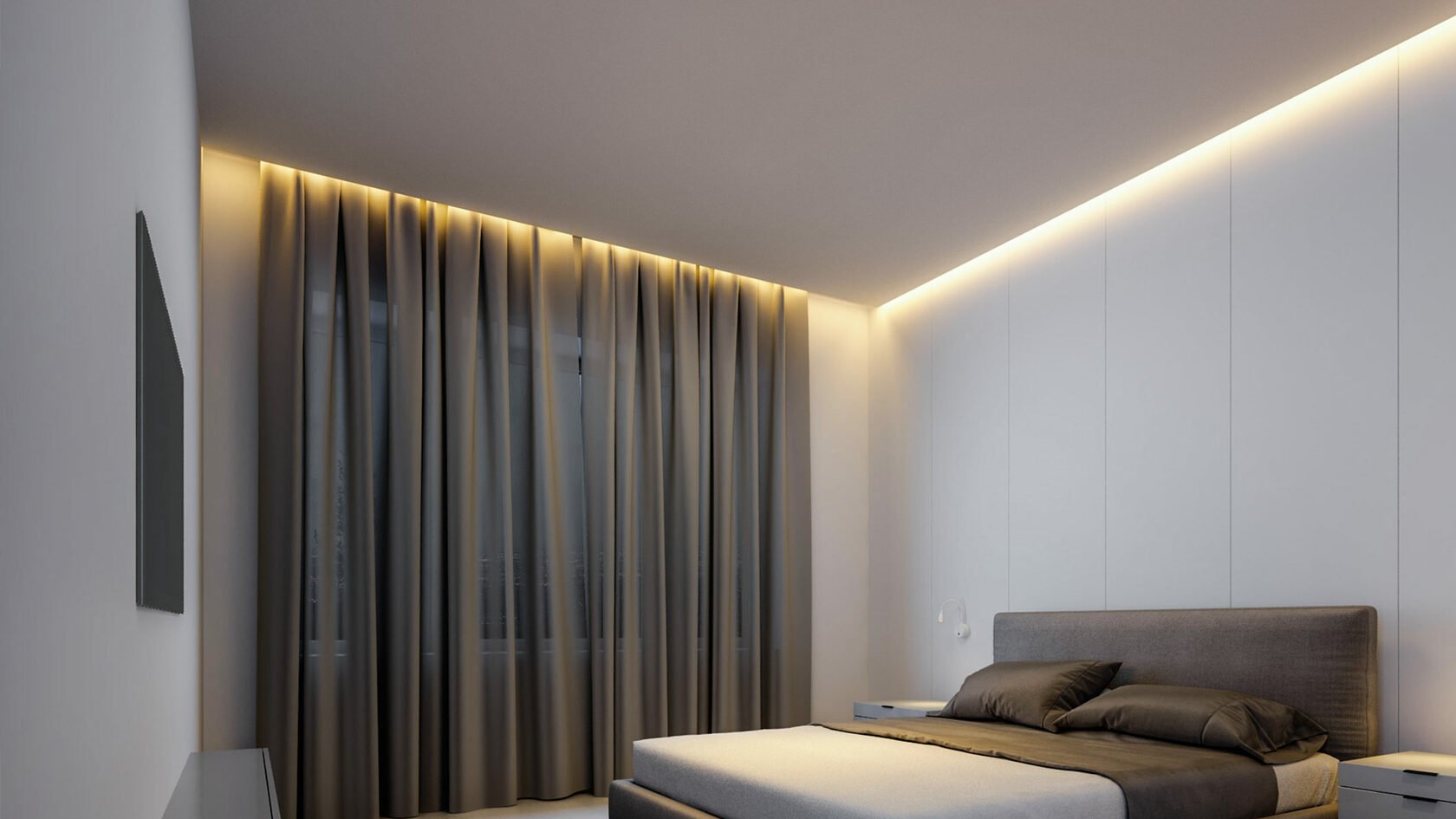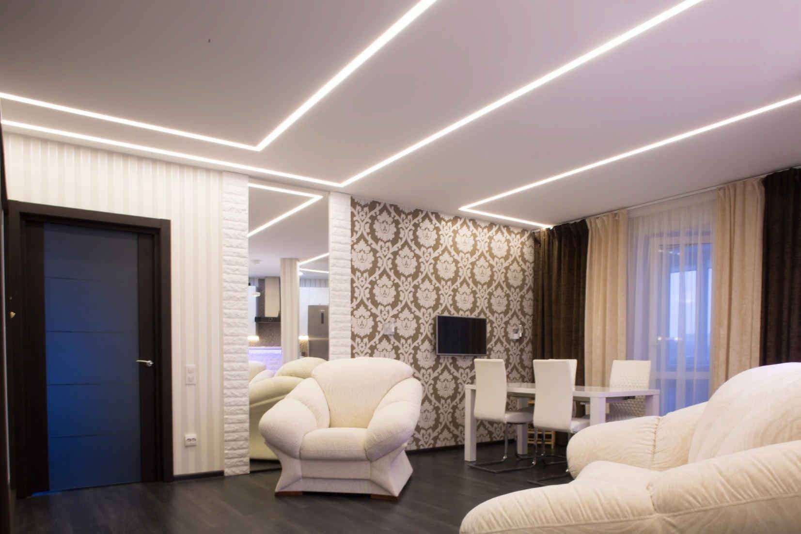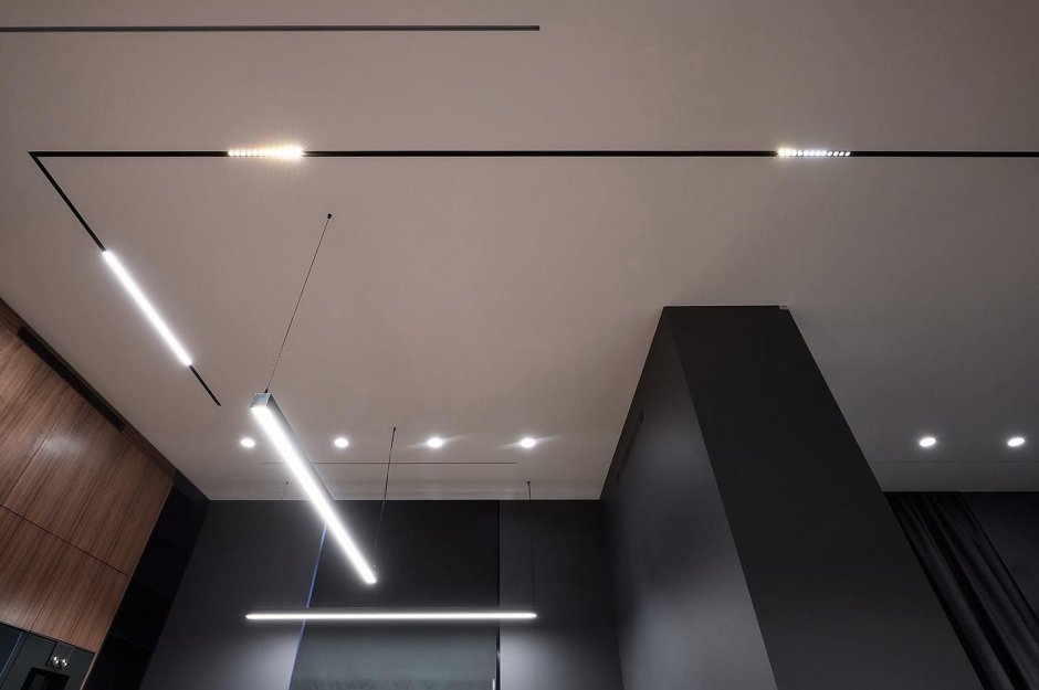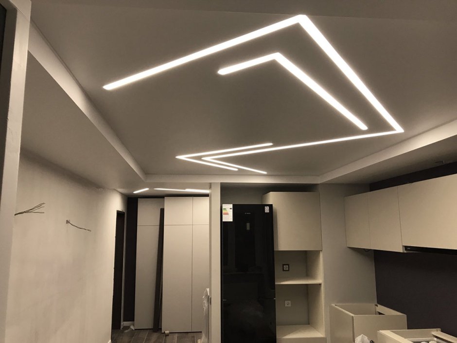 10. Флекси световые линии 30мм на натяжном потолке рассеиватель