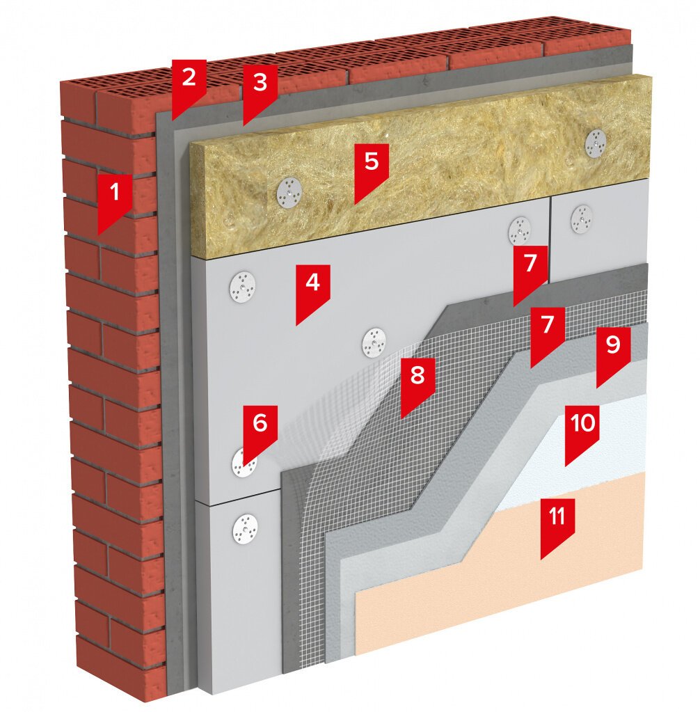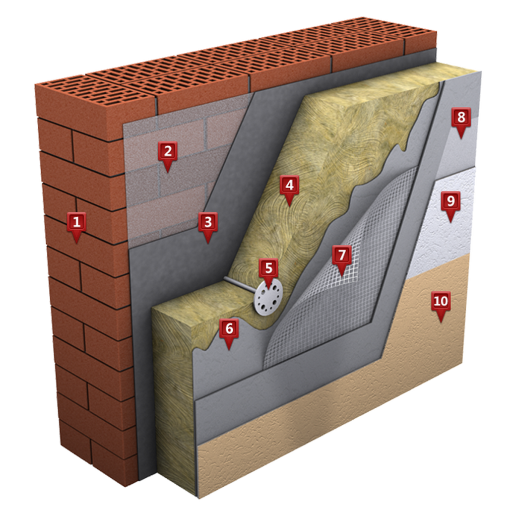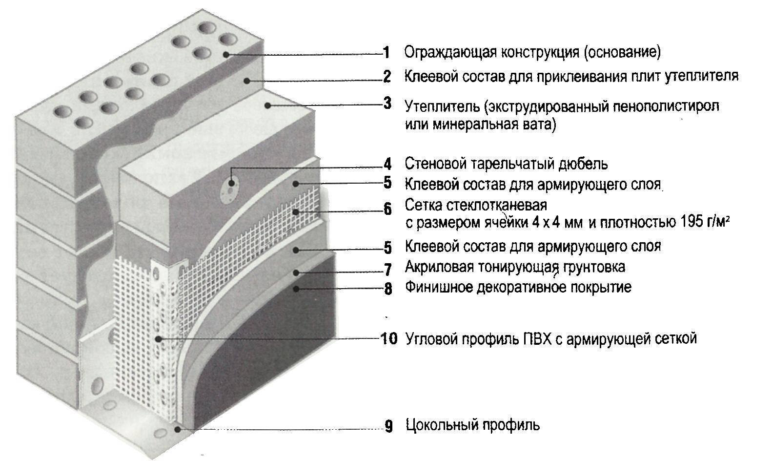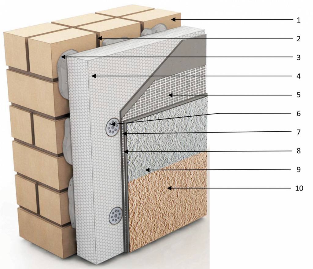1. Пирог штукатурного фасада с утеплителем