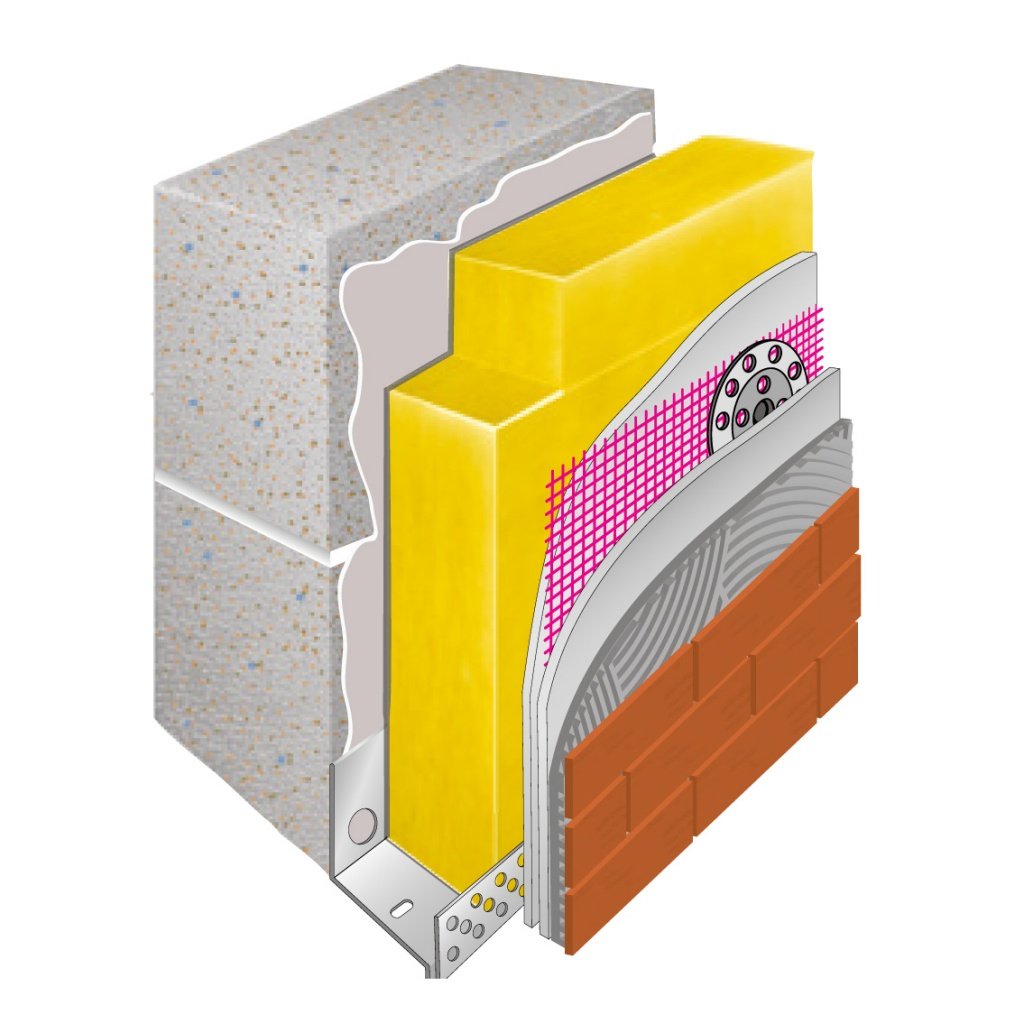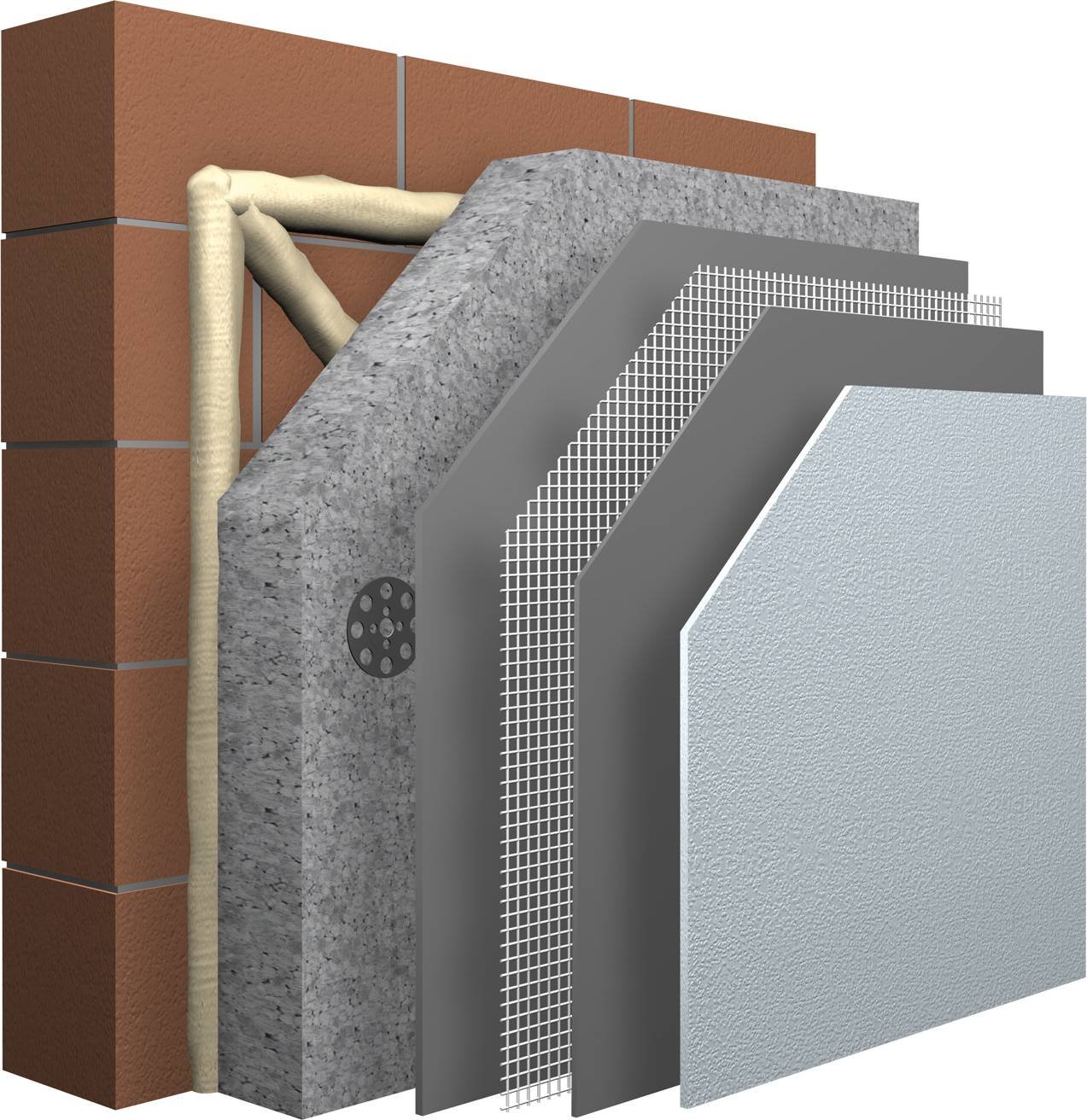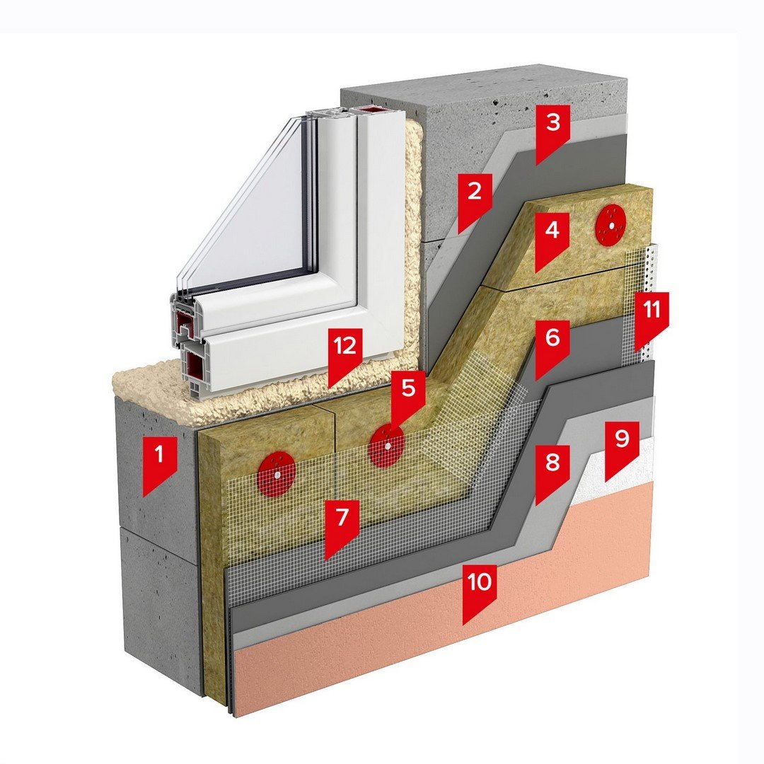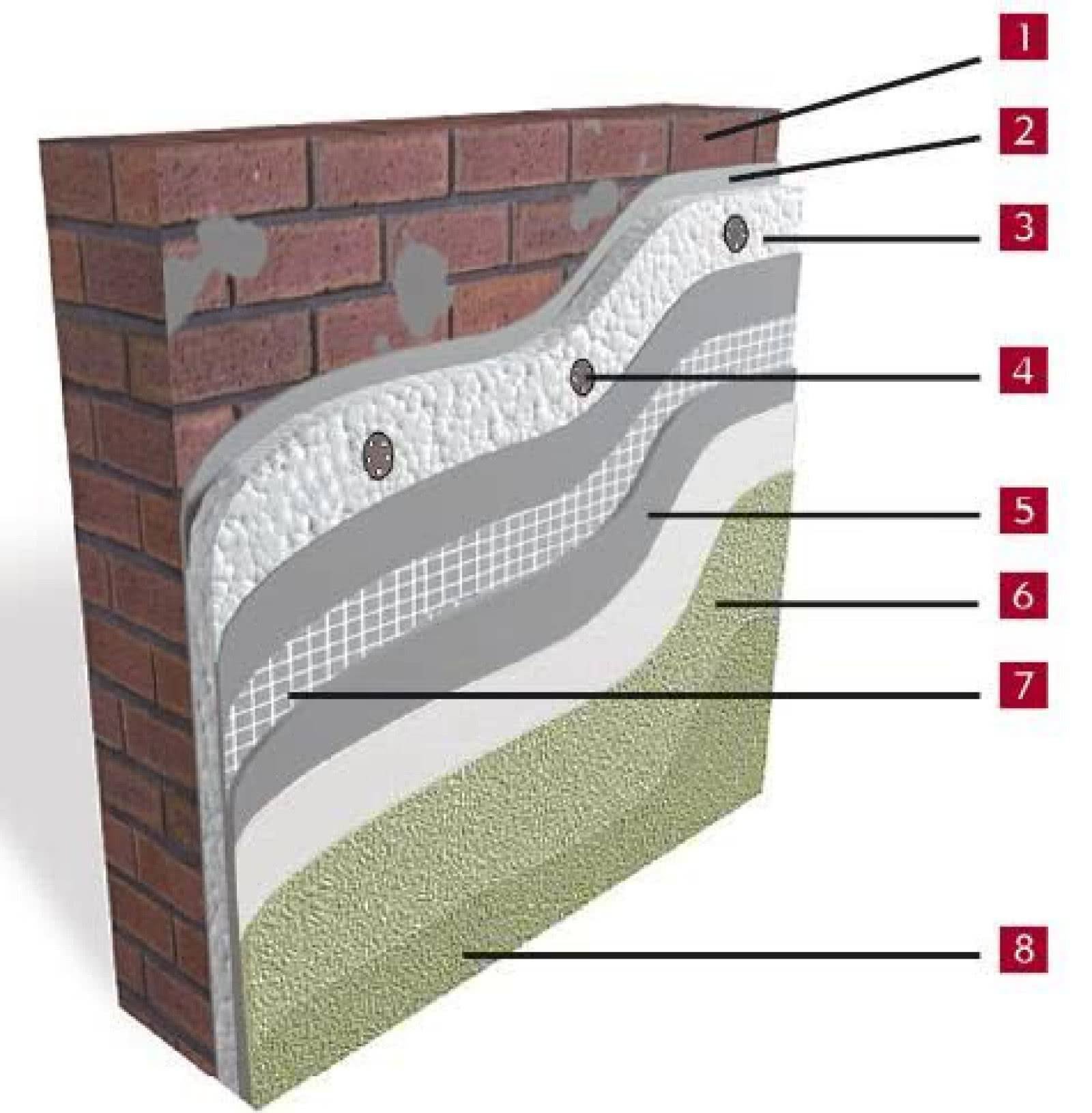 1. Пирог штукатурного фасада с утеплителем
