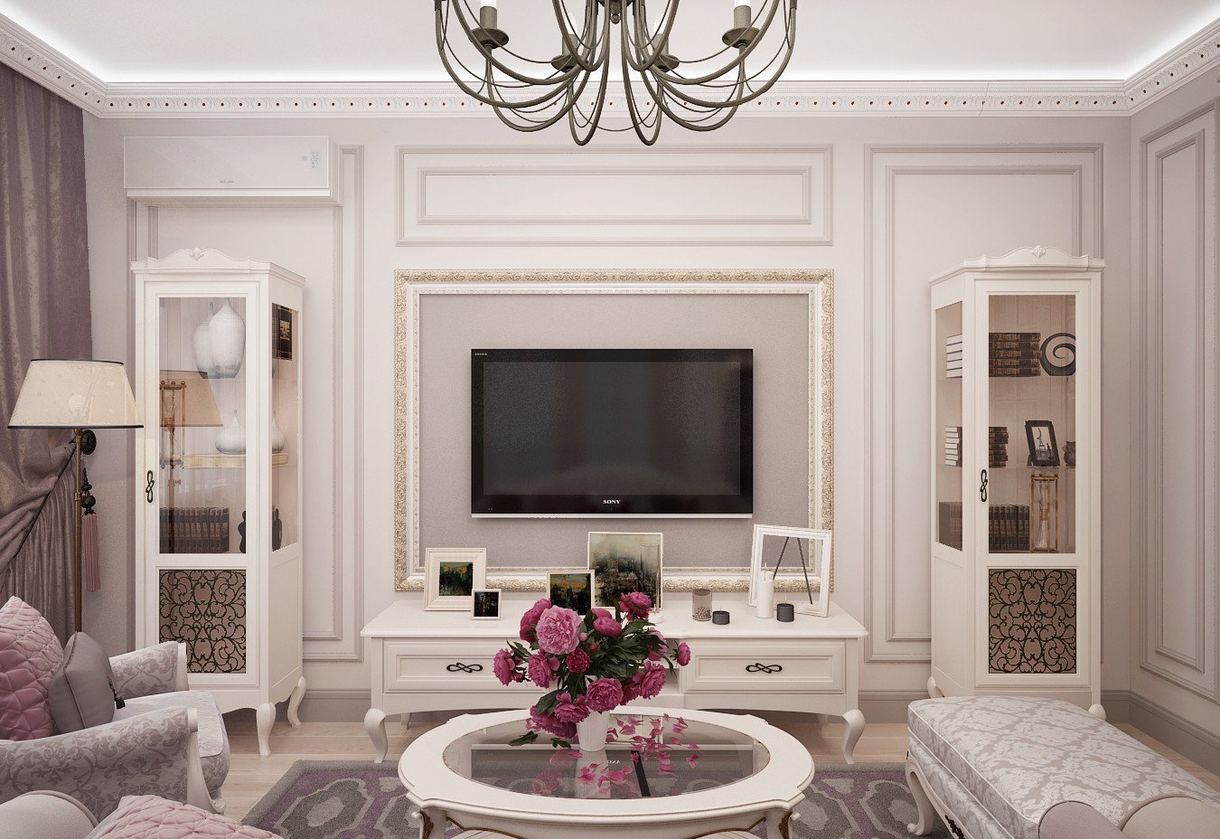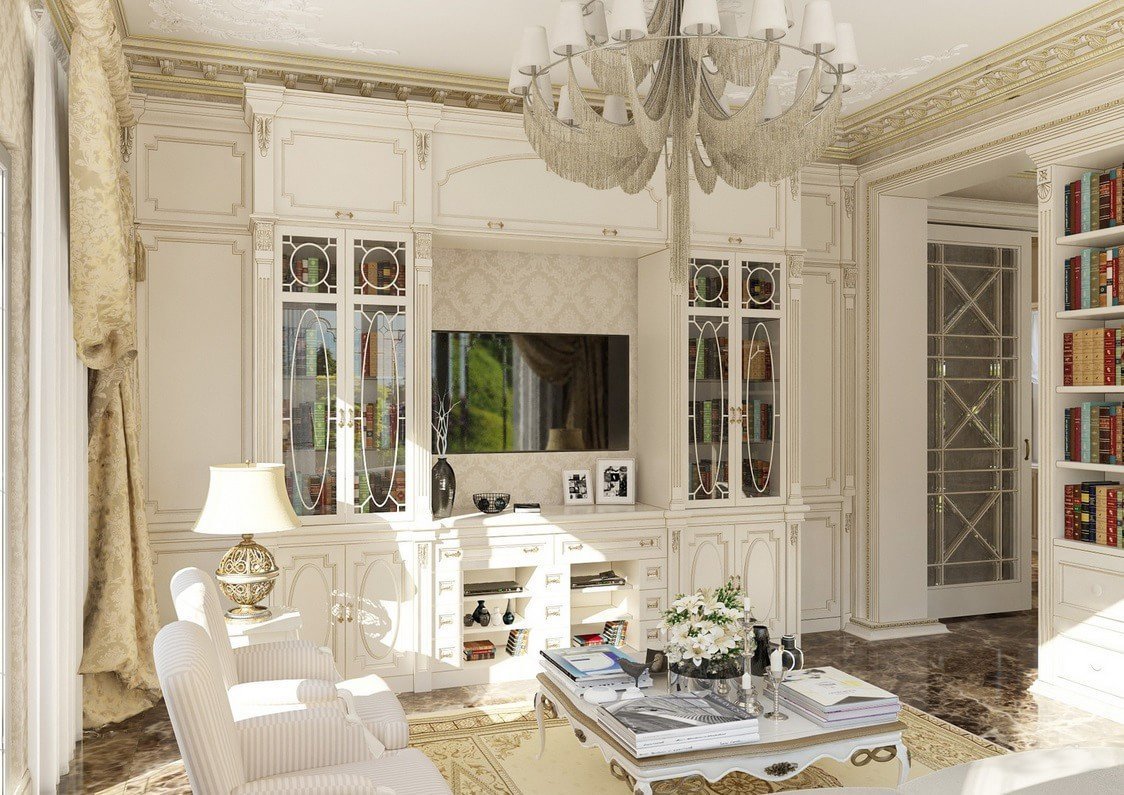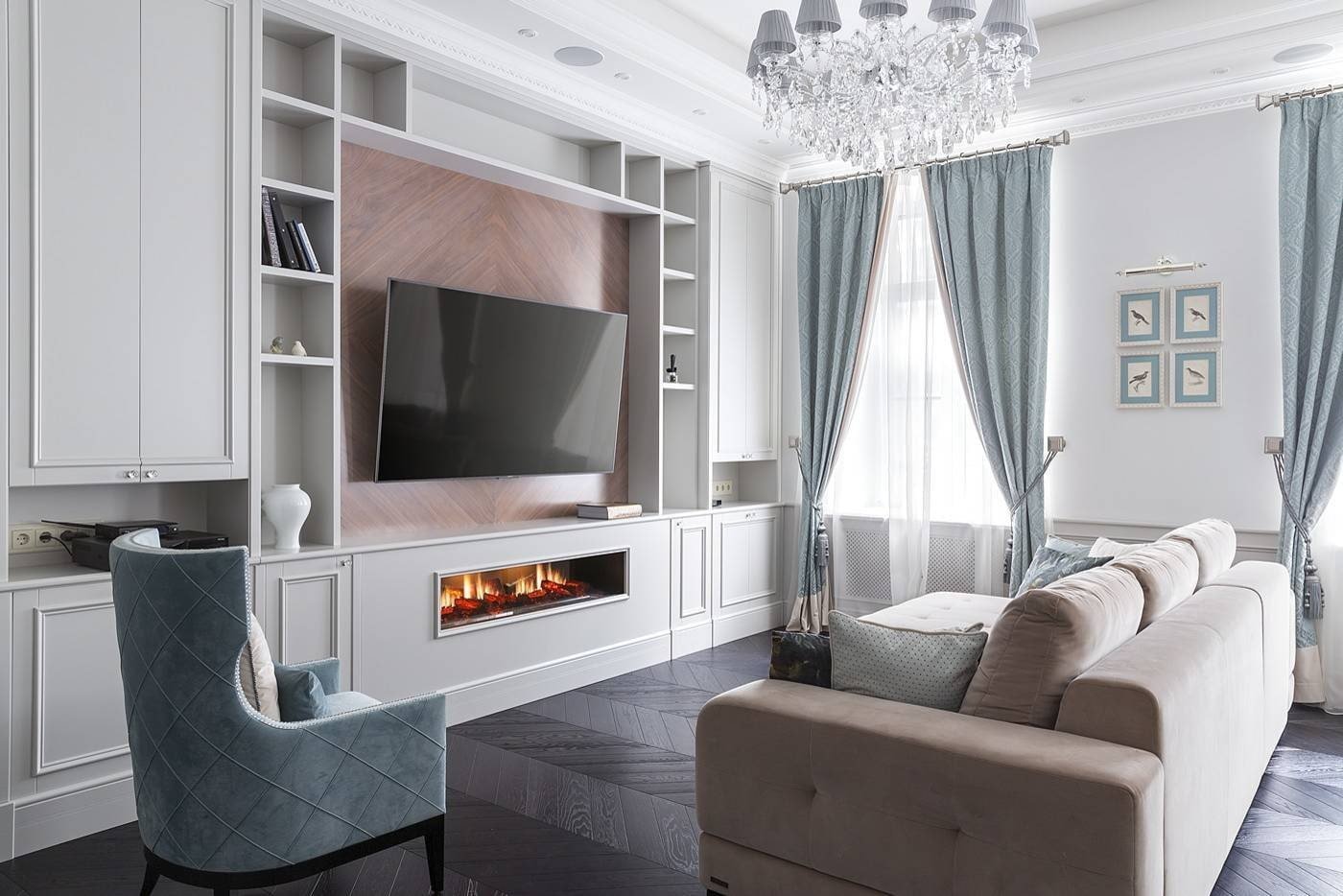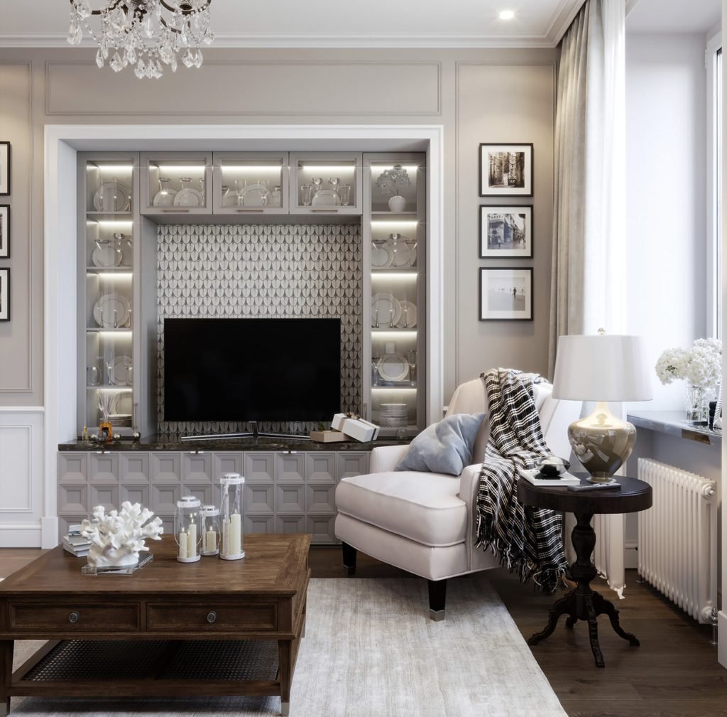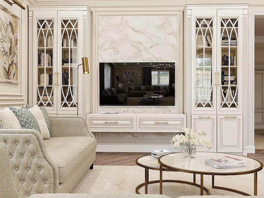 39. Зона ТВ В гостиной в стиле Неоклассика