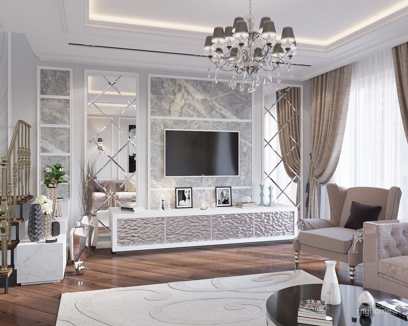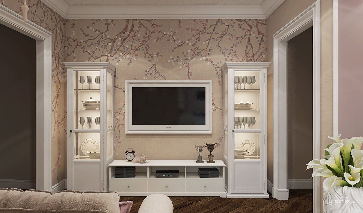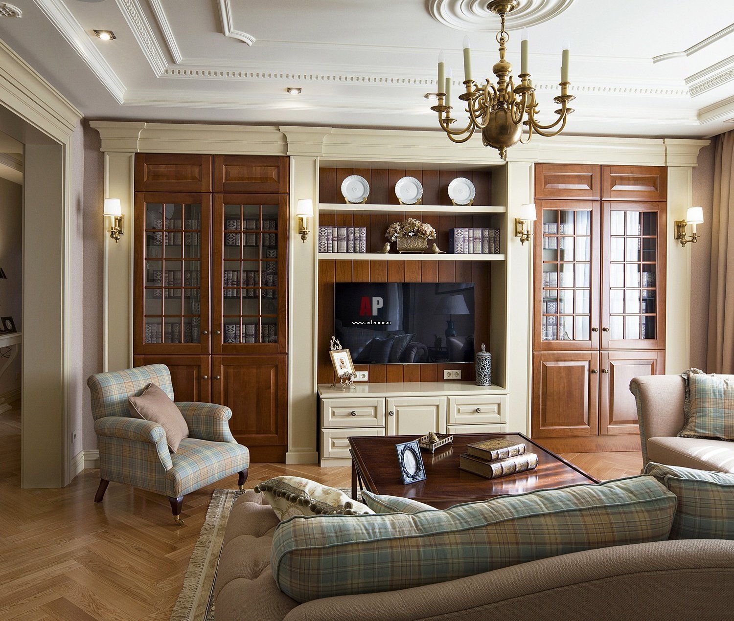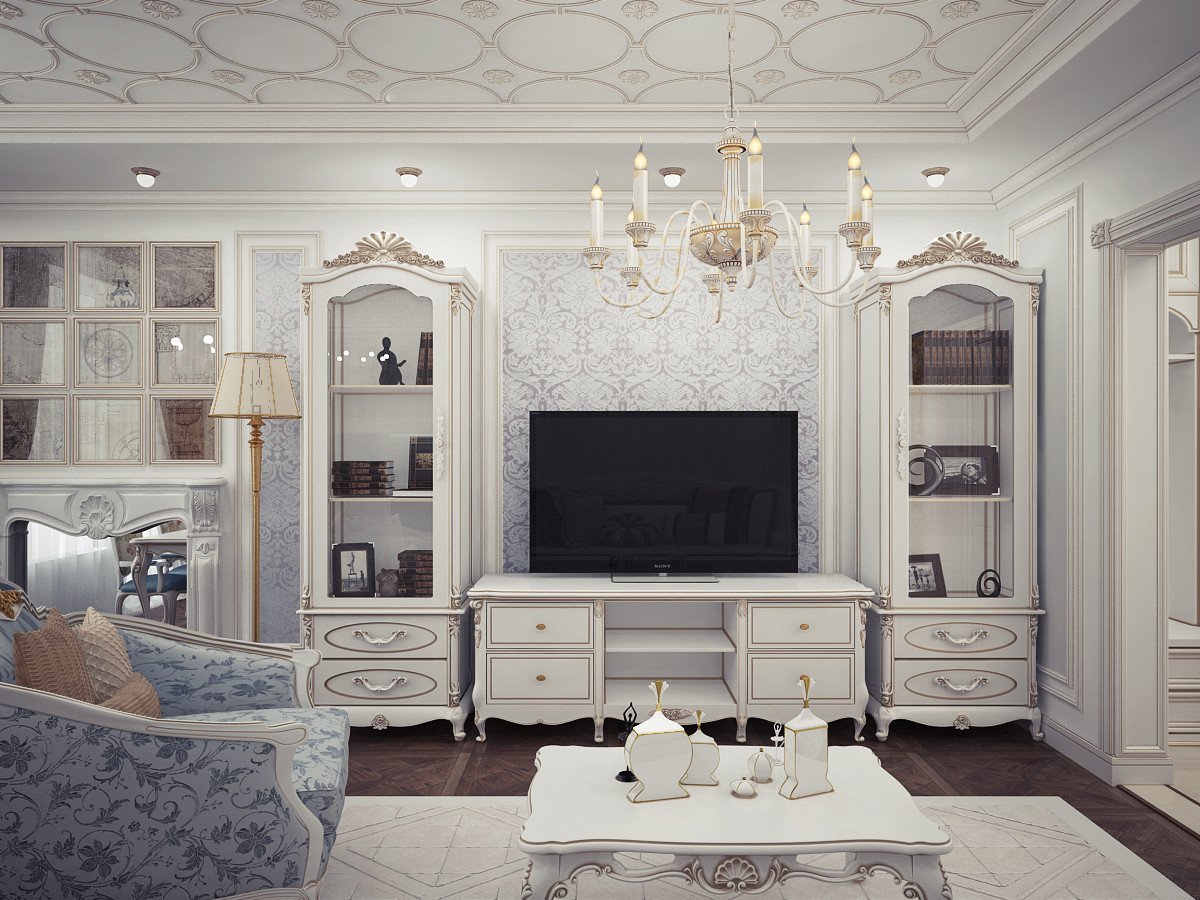 39. Зона ТВ В гостиной в стиле Неоклассика