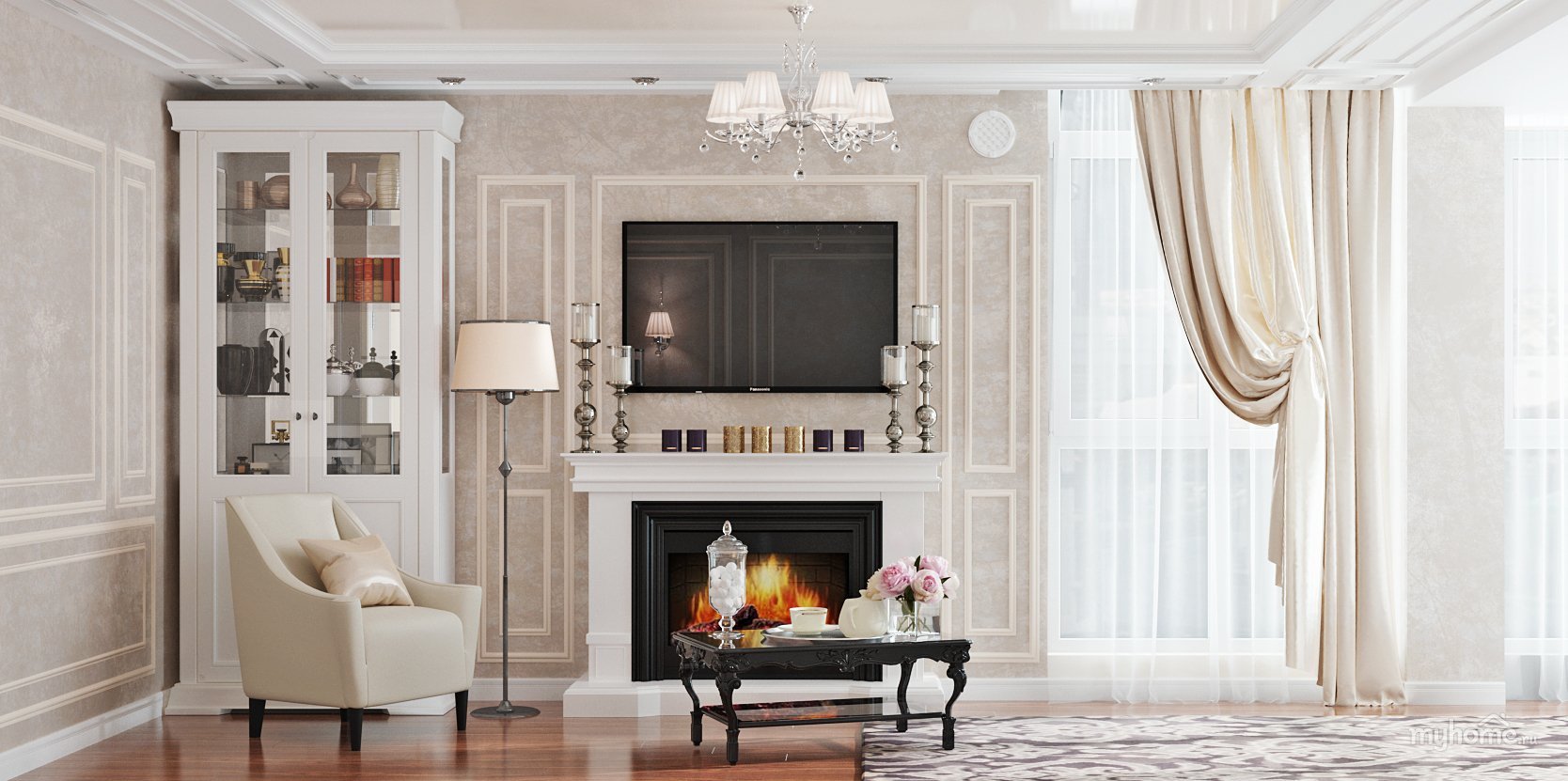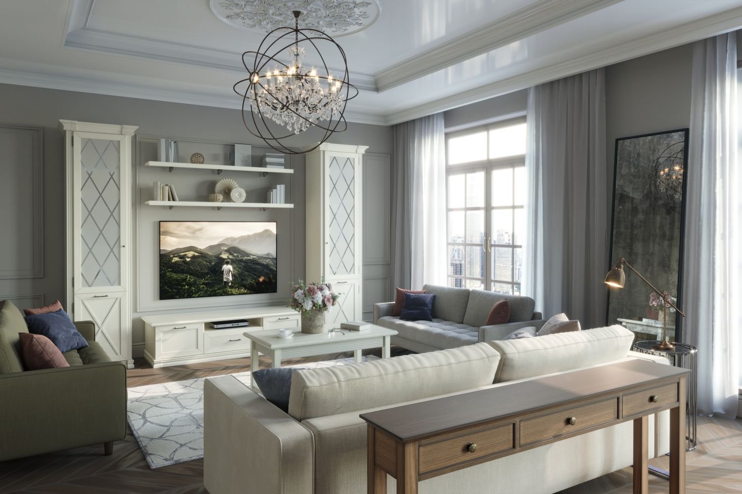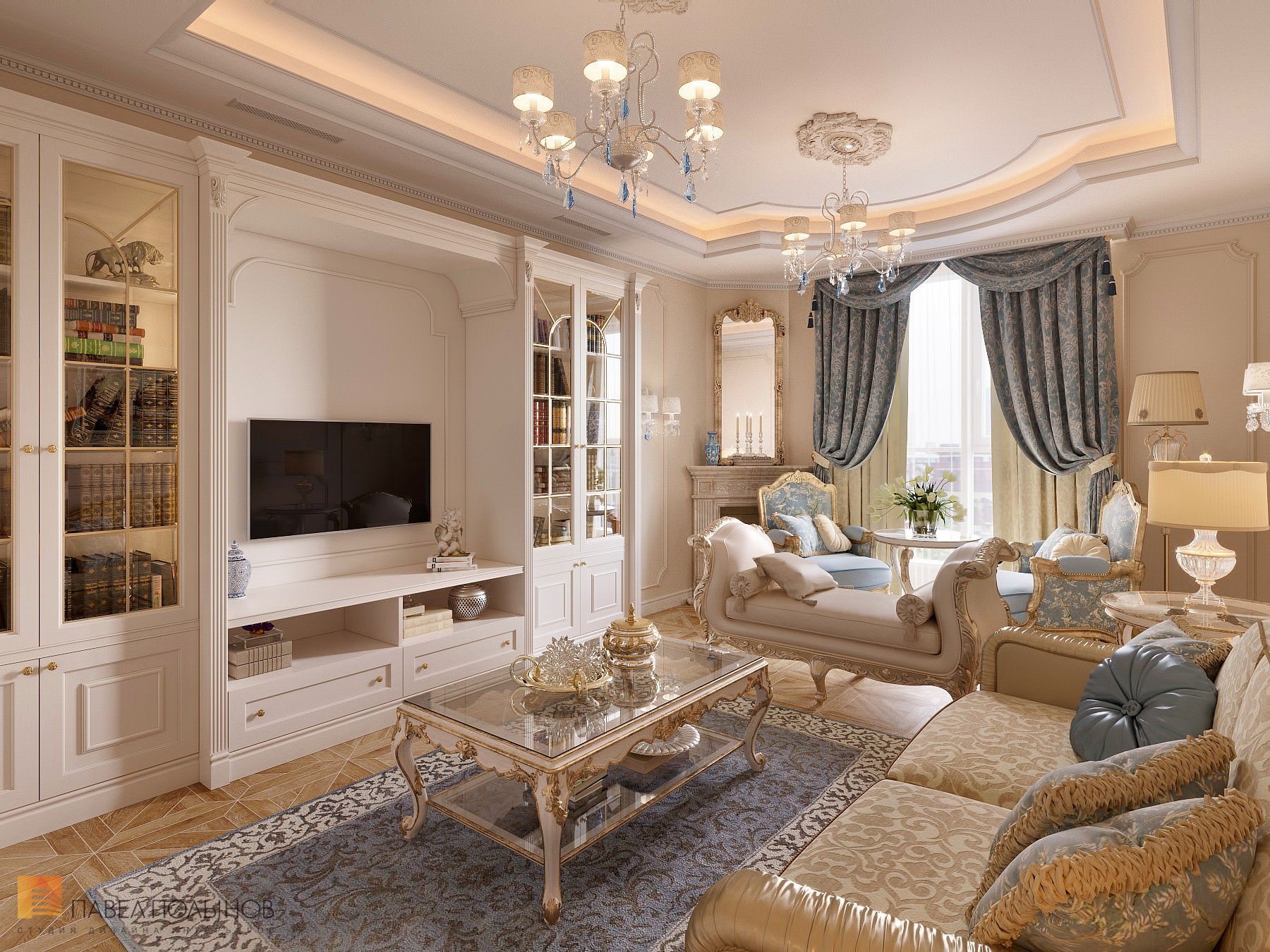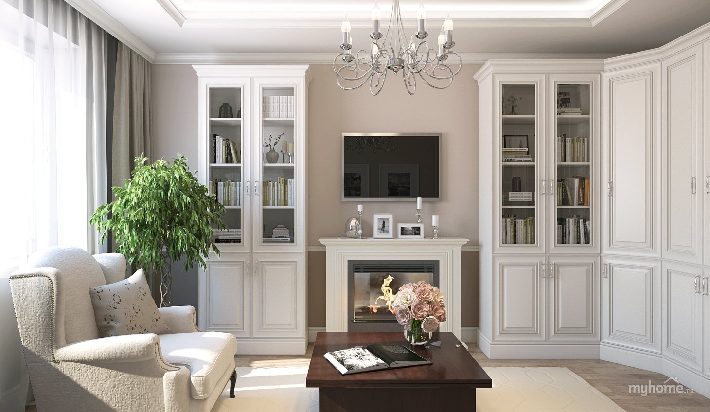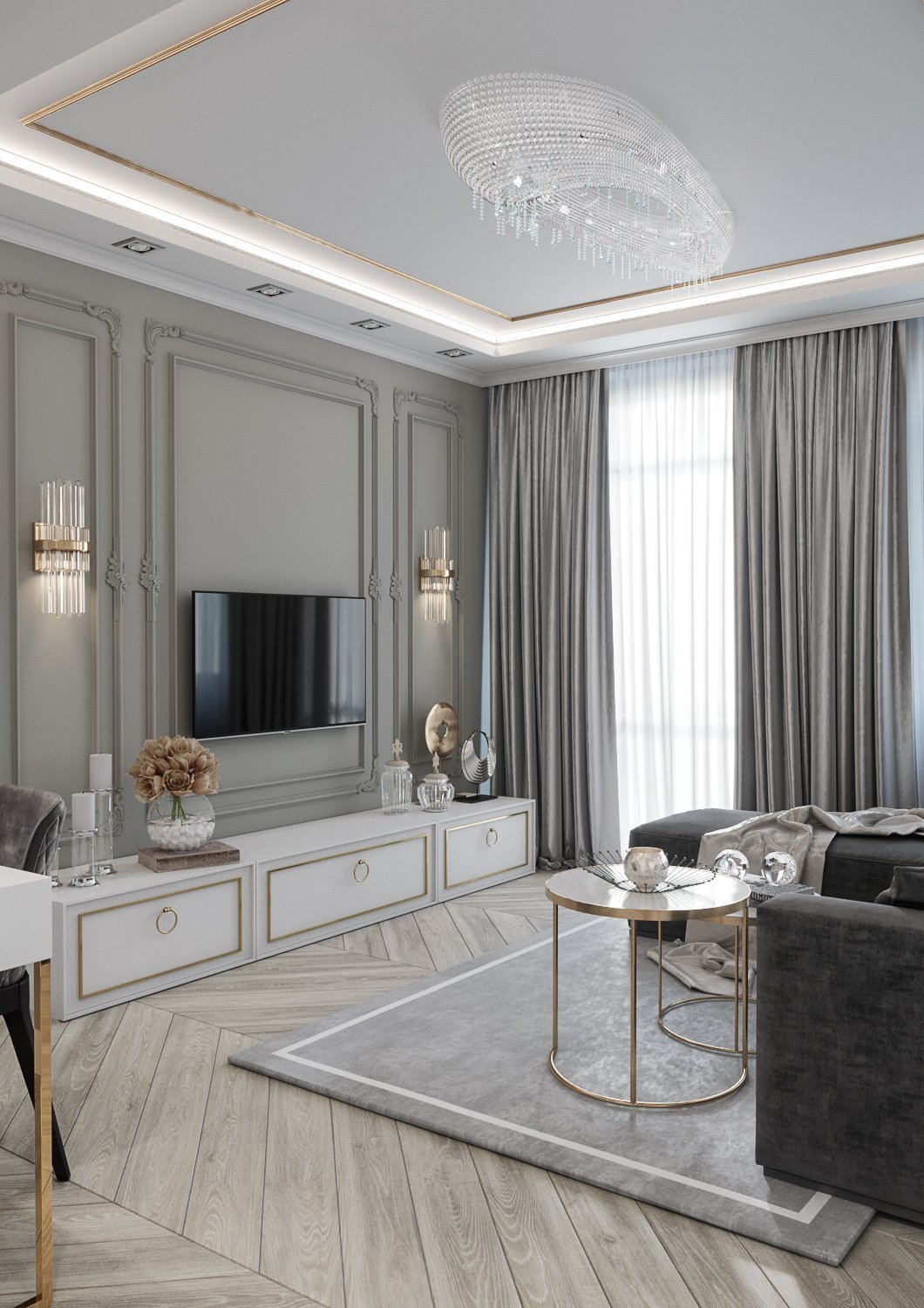 39. Зона ТВ В гостиной в стиле Неоклассика