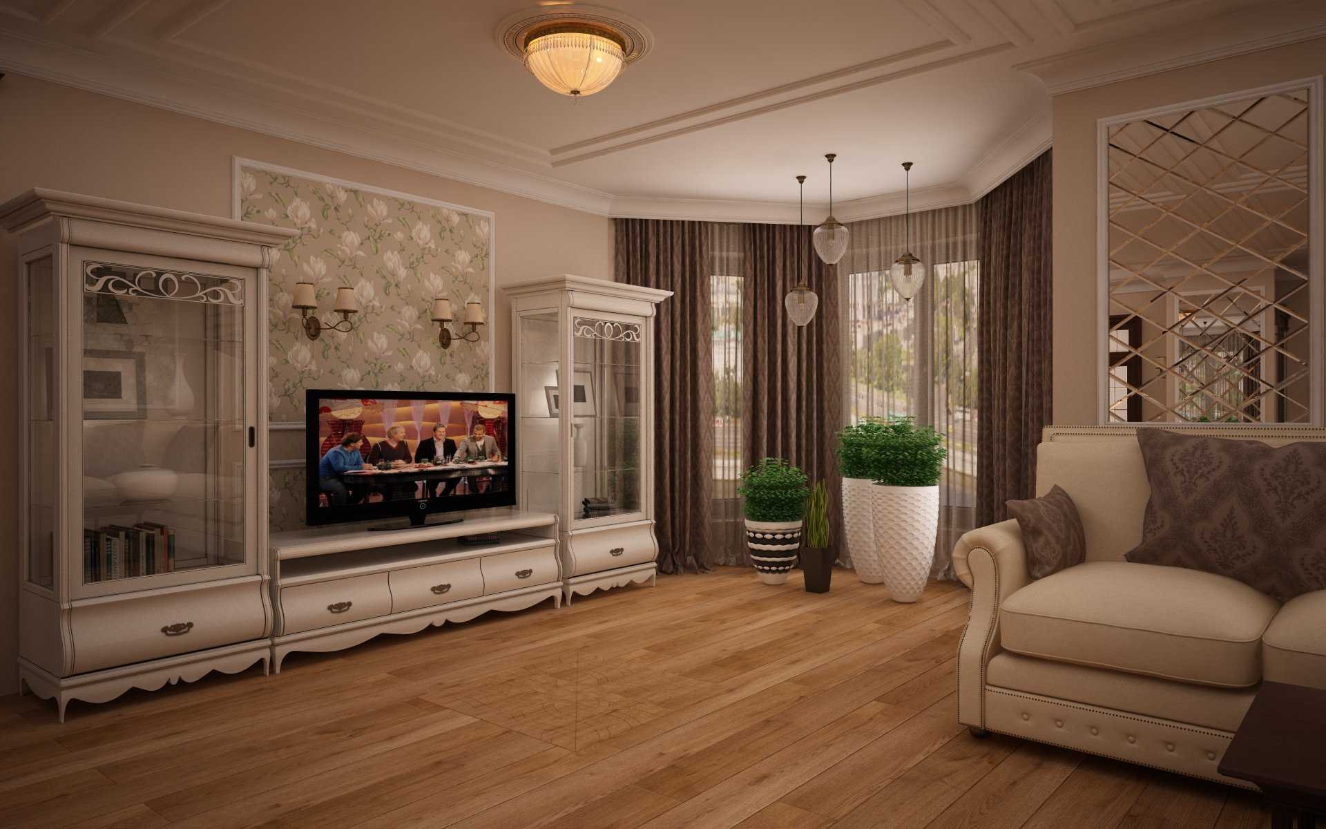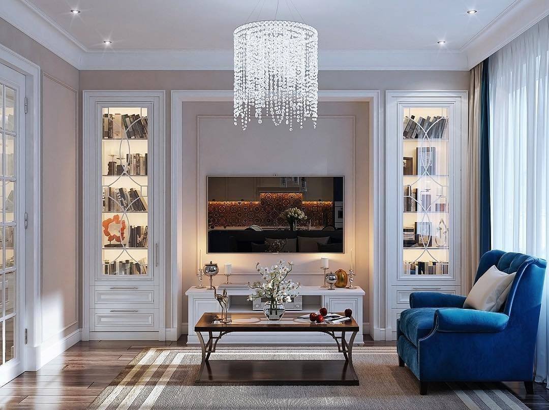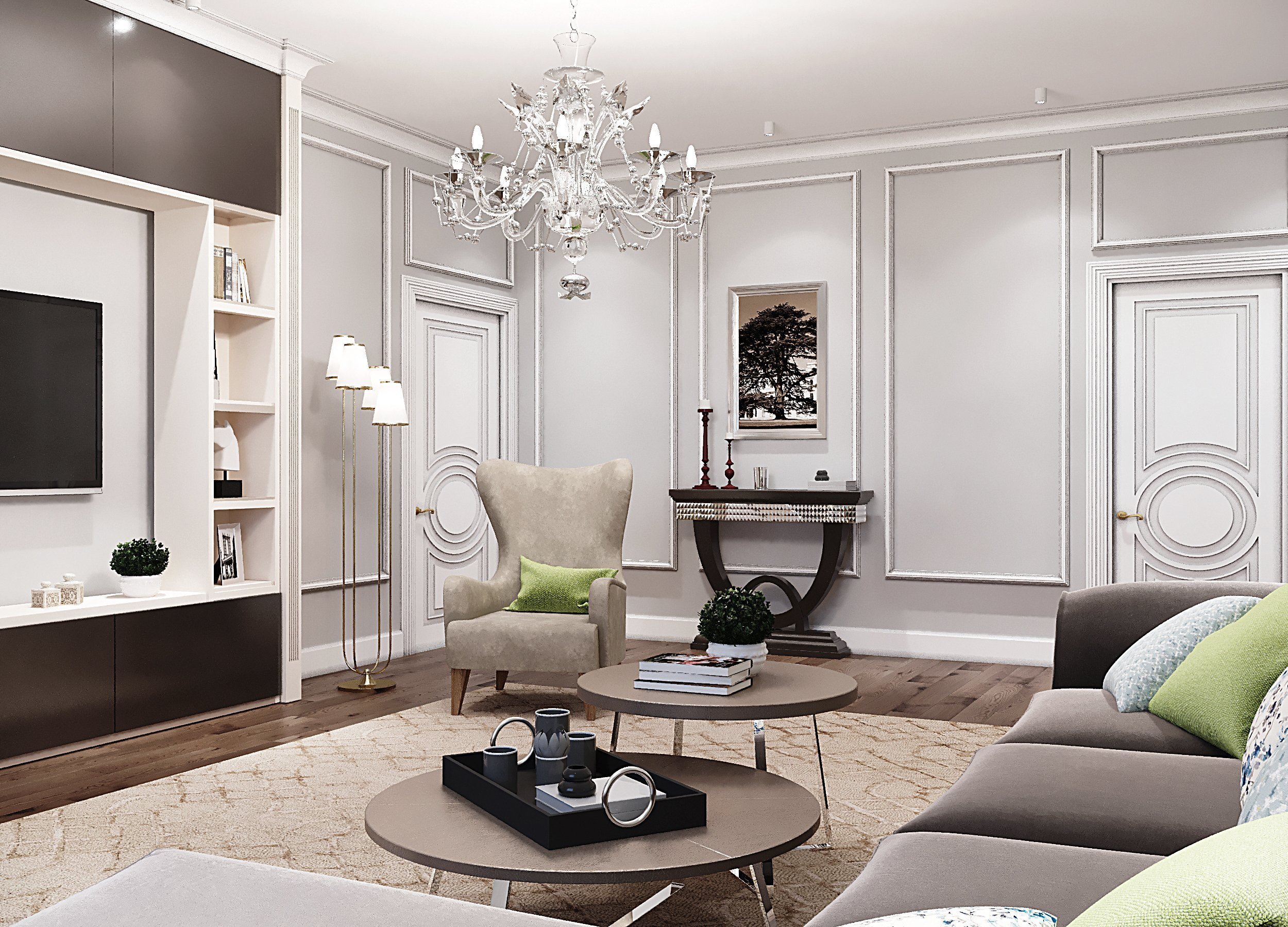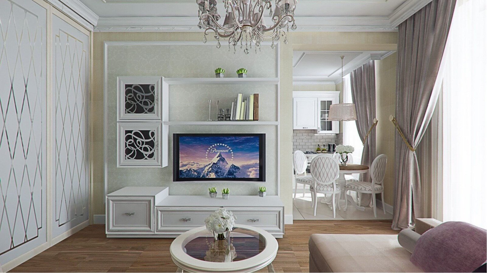 39. Зона ТВ В гостиной в стиле Неоклассика