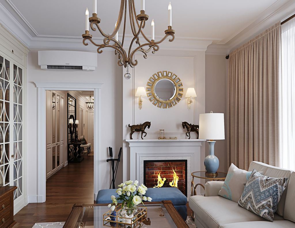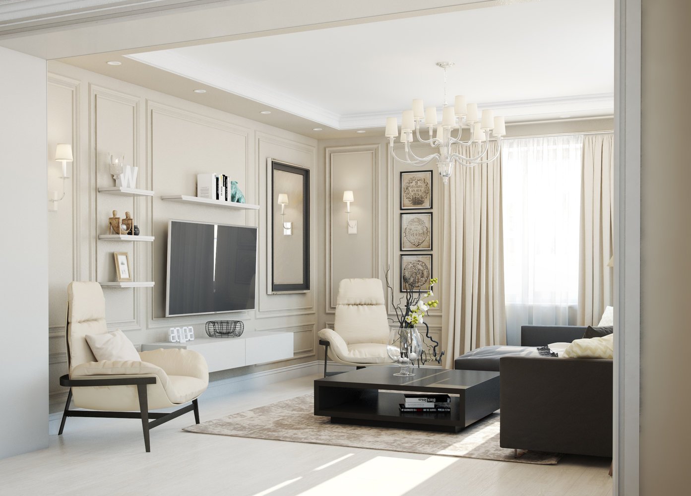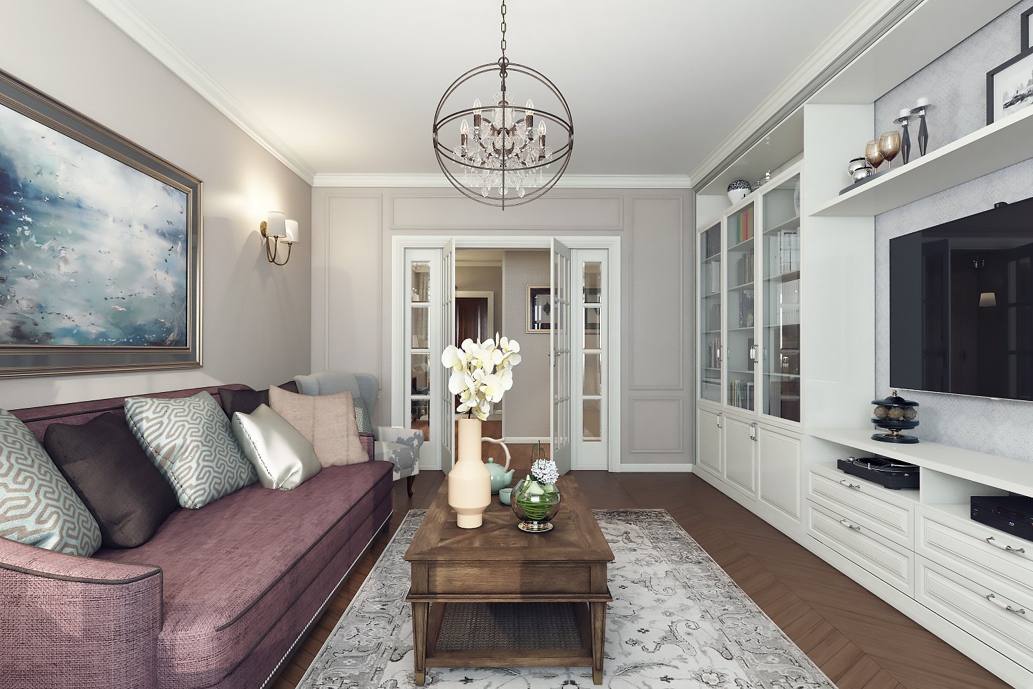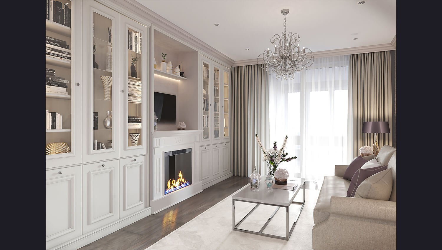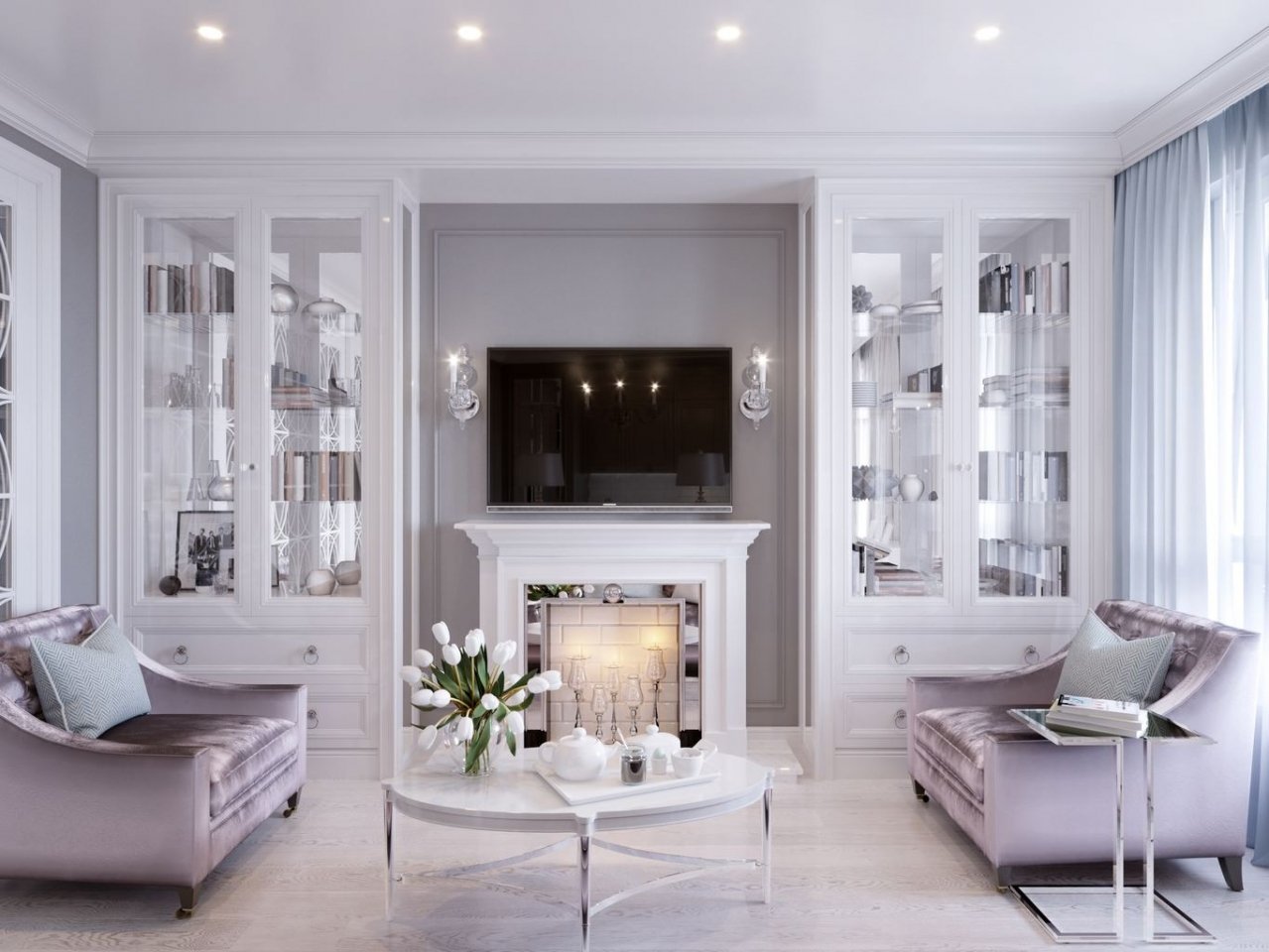 39. Зона ТВ В гостиной в стиле Неоклассика