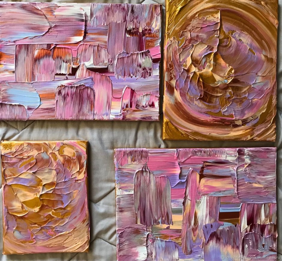 19. Портрет интерьерные картины с поталью и текстурной пастой