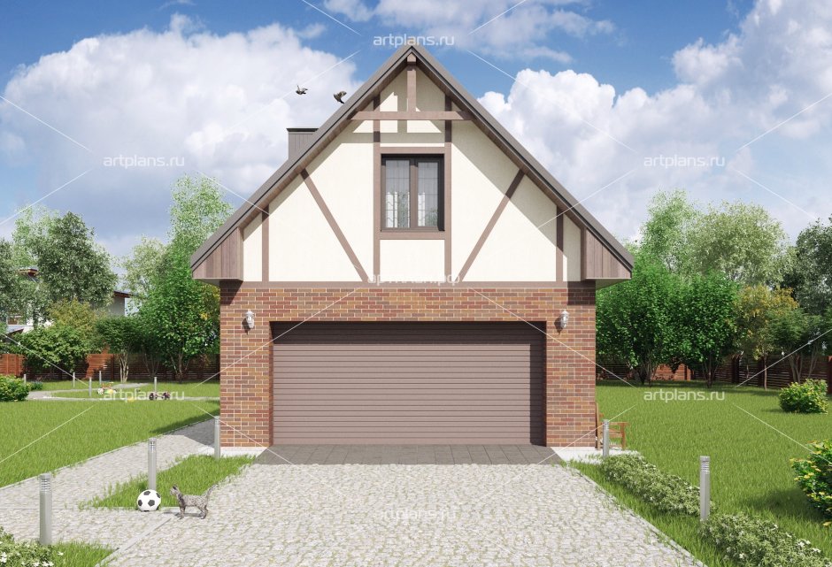 59. Гараж с жилой мансардой в английском стиле