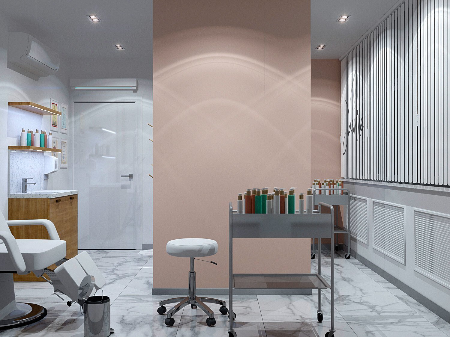 42. Интерьер салона красоты в белых тонах