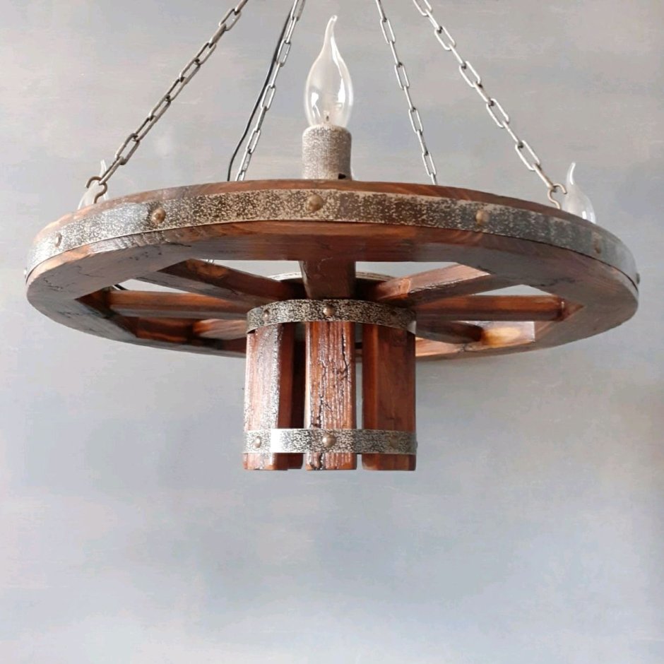16. Светильник из колеса от телеги с керосиновыми лампами
