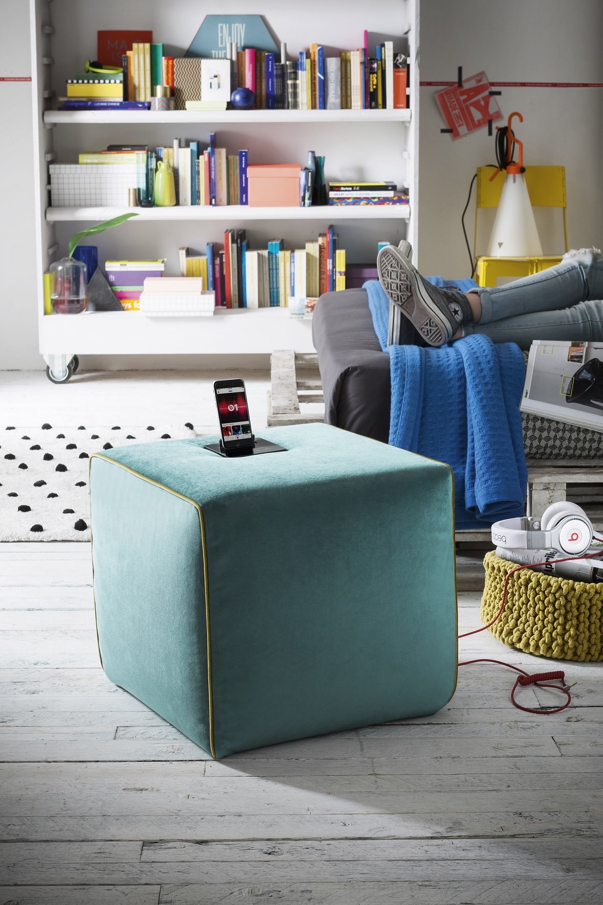 60. Яркий пуф в интерьере