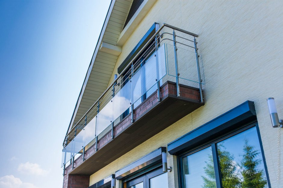 49. Ограждение балкона из стекла в частном доме