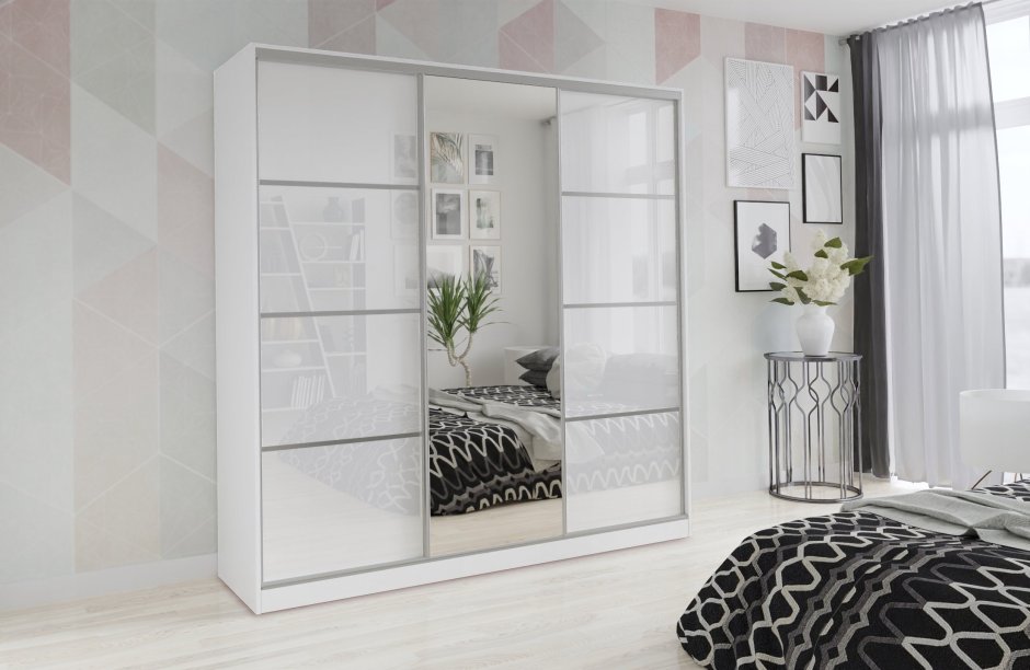 36. Лотос 1 шкаф купе белый глянец лакобель