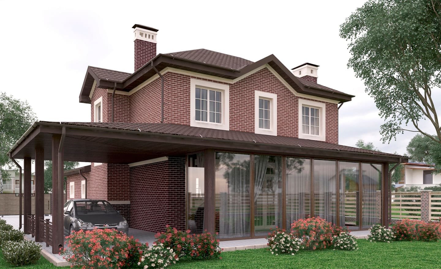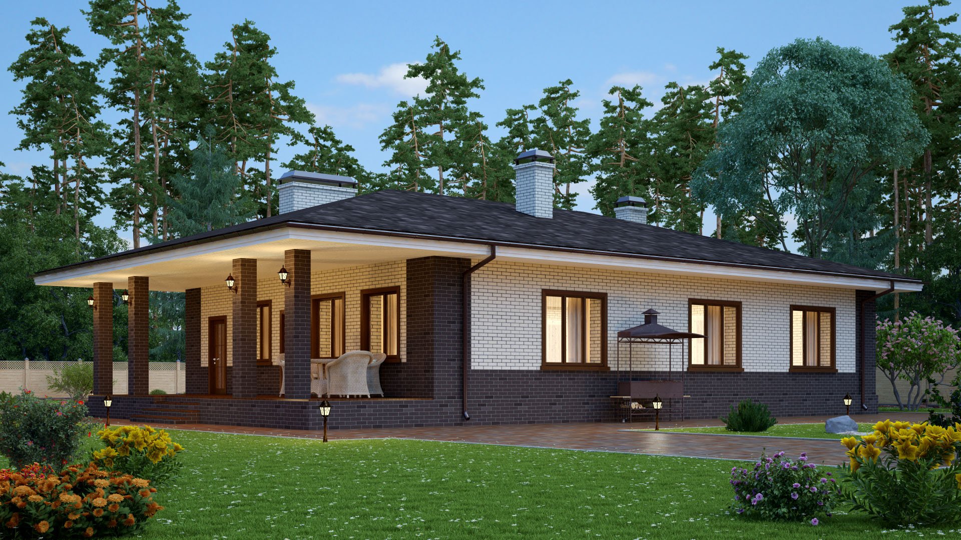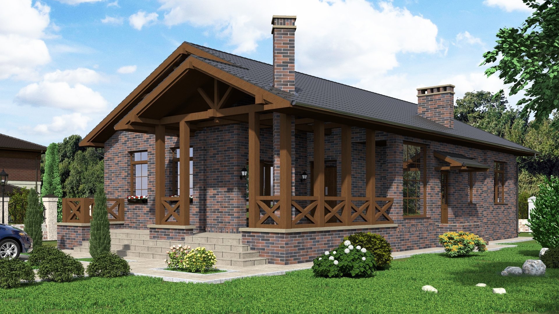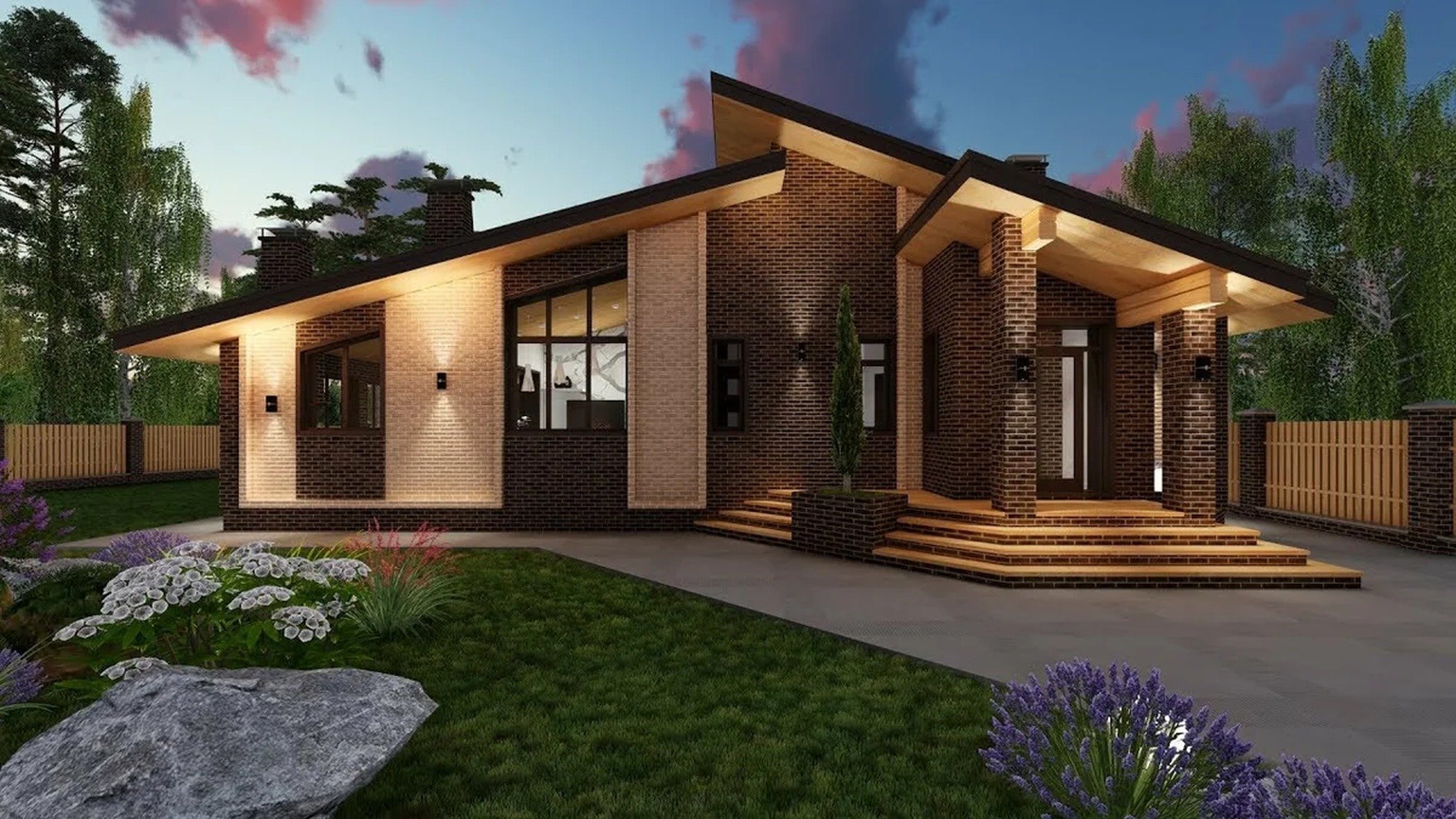 30. Дом Шале одноэтажный 100 кв.м из кирпича