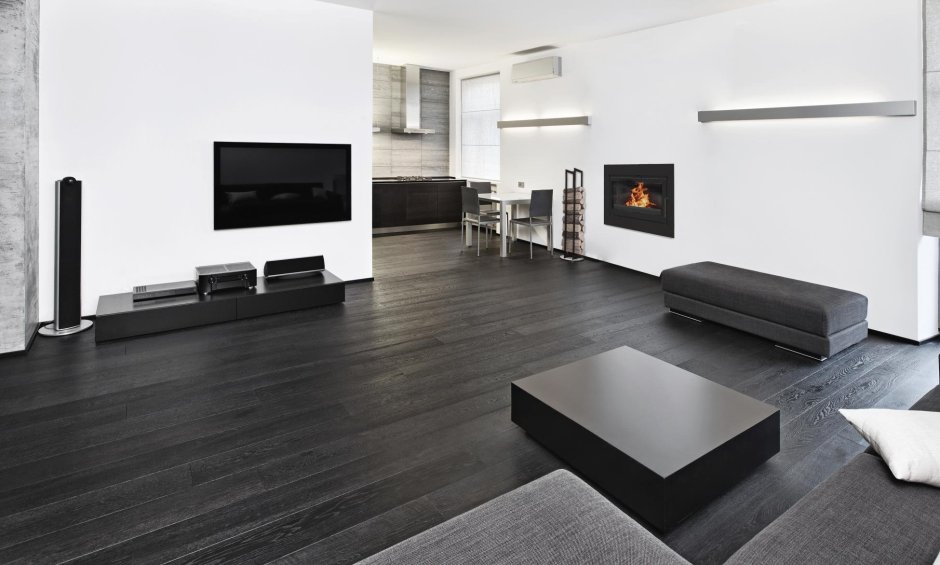 57. Темный паркет в зале