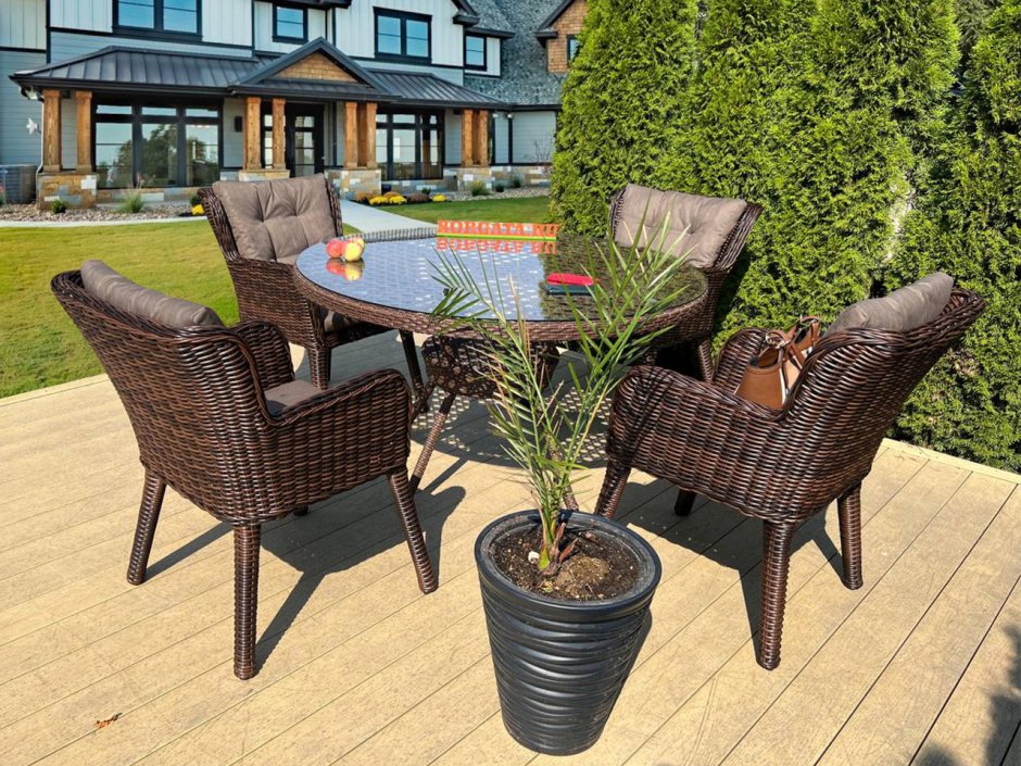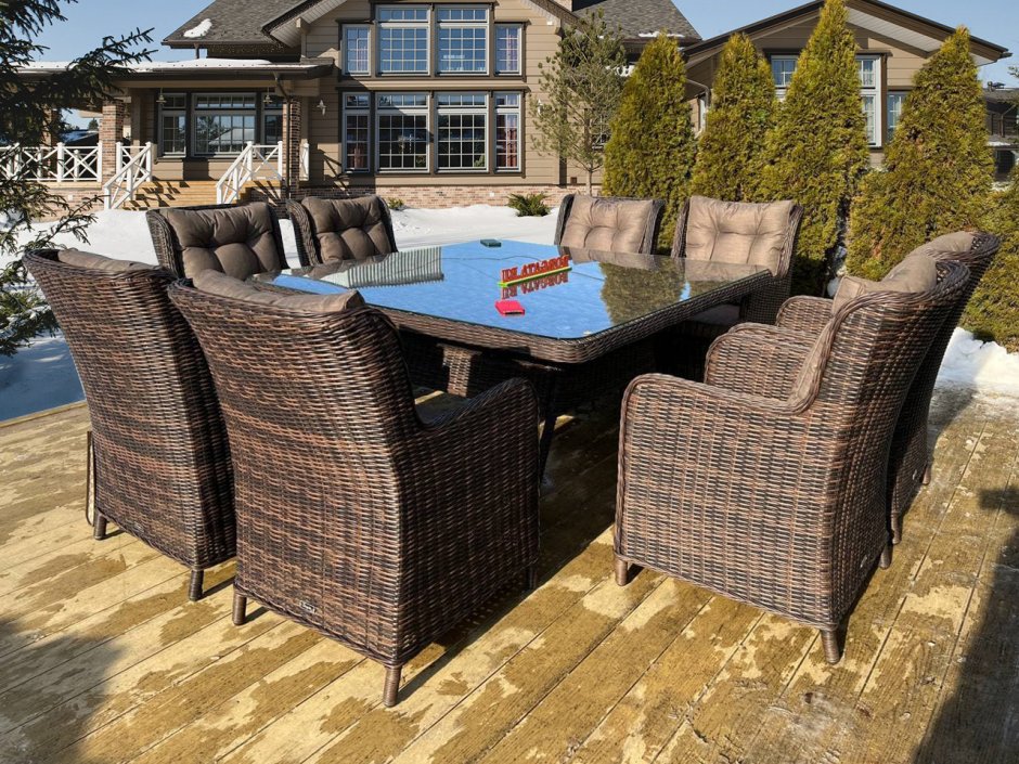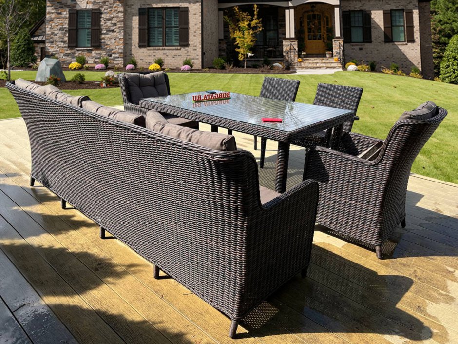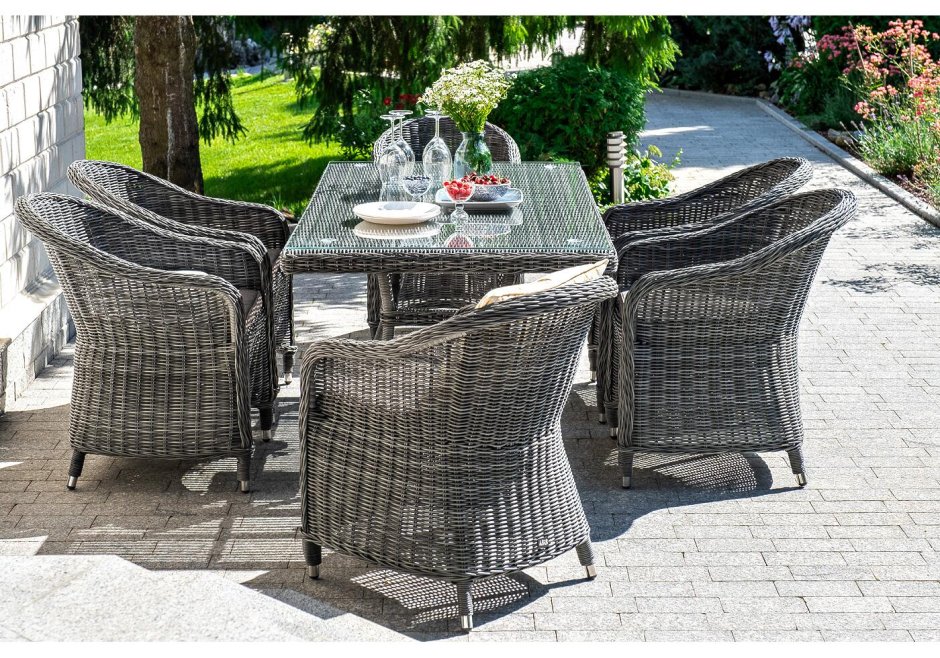 64. Стол из искусственного ротанга со стеклом 6 человек